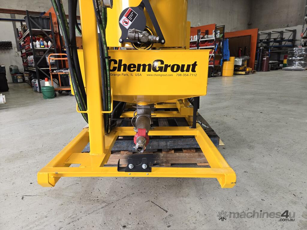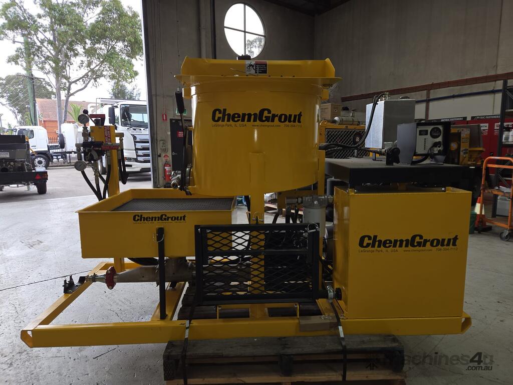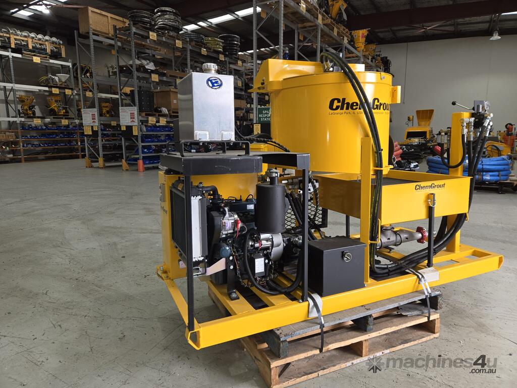 The ChemGrout CG-550/031/DHS/GT is a skid-mounted, self-contained diesel/hydraulic grout plant designed for efficient mixing and pumping of grout materials, featuring a 70-gallon mixing tank and a 45-gallon holding hopper with a rugged 3-inch single-acting piston pump.