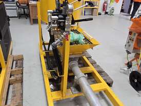 The grout pump is a Size 6, 3 stage, variable speed, positive displacement, progressive cavity, rotor-stator pump that delivers up to 30L/Min, 261 PSI. This unit is powered by a 20 HP Diesel engine, equipped with electric start.