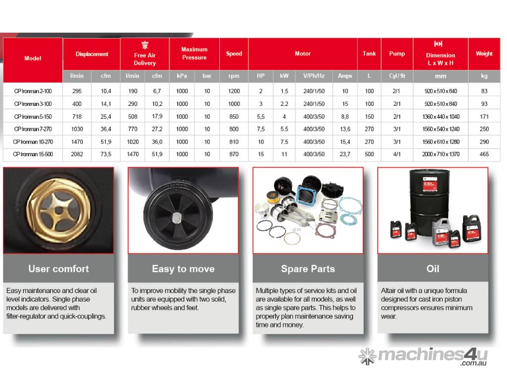 Chicago Pneumatic CP Ironman 2-50 AUS 50L 2HP Tank Mounted Single Phase Piston Air Compressor