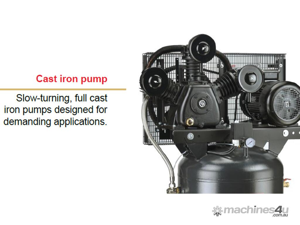 The Ironman Vertical range is Chicago Pneumatic's latest series of Piston Air Compressors. Easy to use, efficient and reliable, the Ironman Series meets the compressed air demands of many industries including cabinet making, tire shops, paint shops, car dealers, maintenance shops, etc. A seamless product in terms of user friendliness, reliability and life duration. This series of compressors is made for tough and hard working conditions.