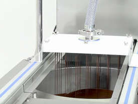 The Infinity AML is an automatic solid chocolate moulding line designed for high-speed production using standard 275 × 175 mm or 275 × 135 mm polycarbonate chocolate moulds. Capable of depositing up to 100 g per second and achieving throughput rates of up to 900 moulds per hour, the AML gives chocolate manufacturers a compact, efficient, and cost-effective way to automate solid mould production.