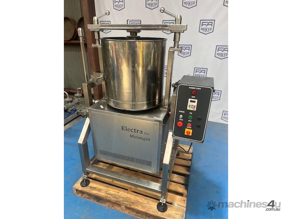 A melanger is granite stone grinder used to grind cocoa bean nibs into chocolate liquor. 60 Kg capacity 3 HP single phase. Electra Pro Commercial Chocolate Melangers Electra Pro Commercial Chocolate Melangers can grind up cocoa beans,Nut Butter and all kind of food materials.