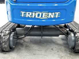 The TRIDENT 1.2T Excavator features multiple attachments, expandable track, swing boom, quick hitch, extra-length dozer blade, 12 HP diesel engine, and multiple hydraulic outputs, ensuring versatile and efficient operation.