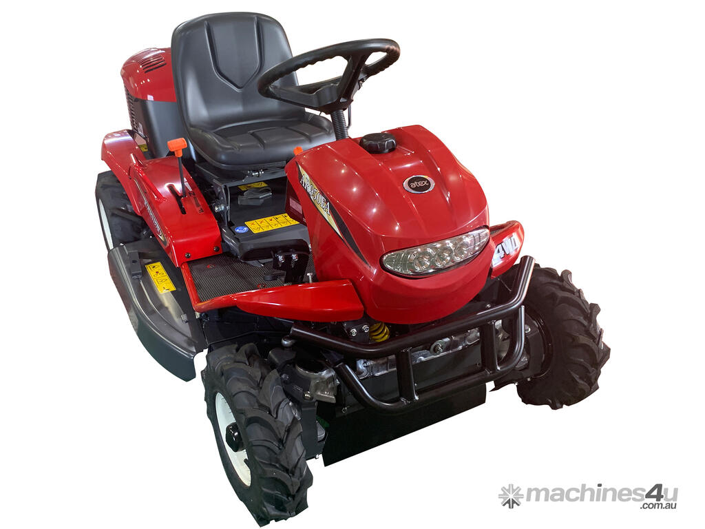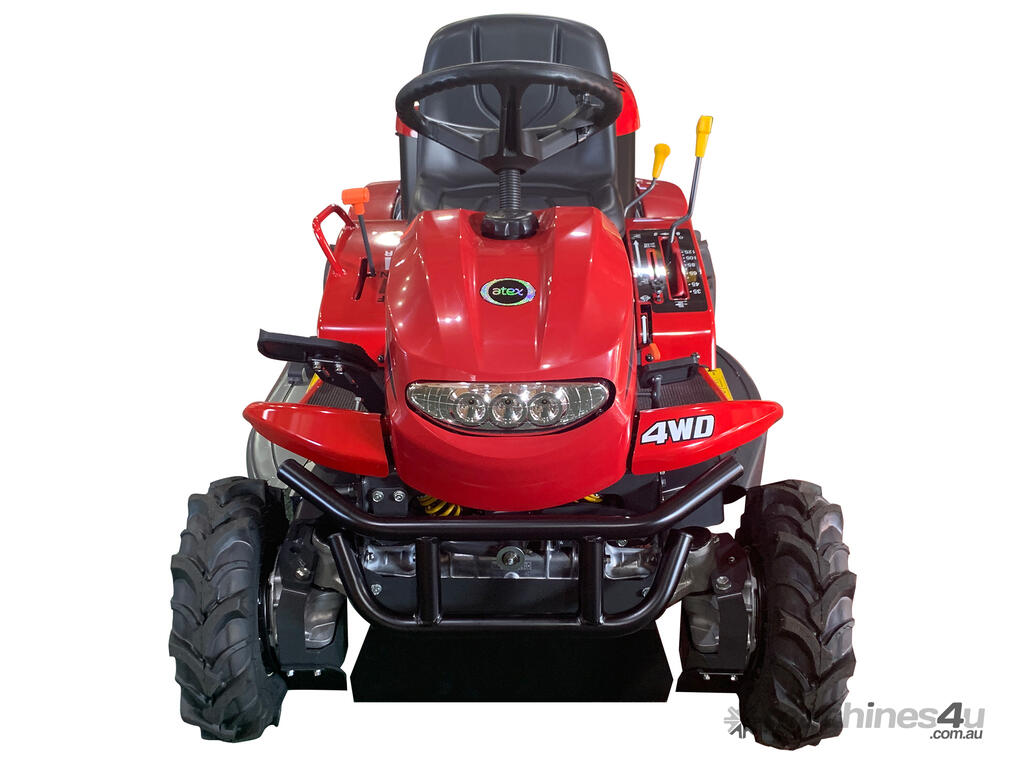 The Atex AR950F is a 4WD ride-on suitable for mowing grassed slopes and heavy vegetation up to 25 degrees. It will also do the work that most conventional ride-on mowers do on flat ground.