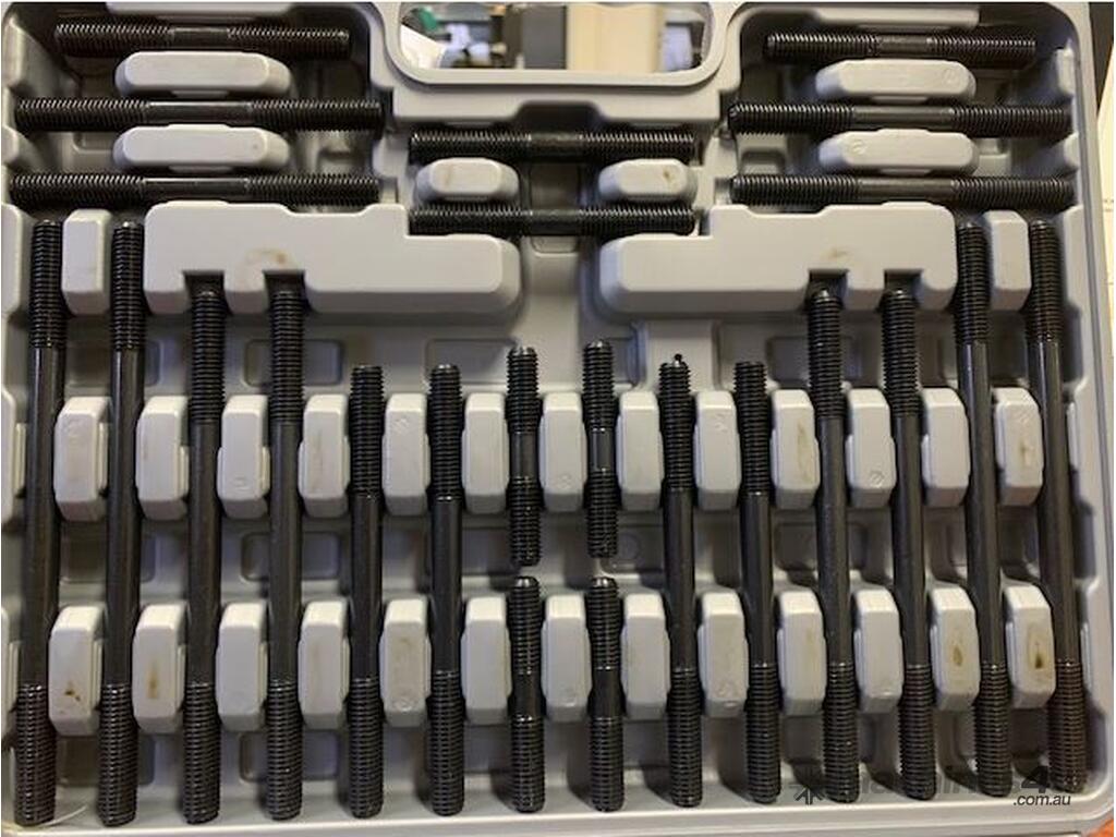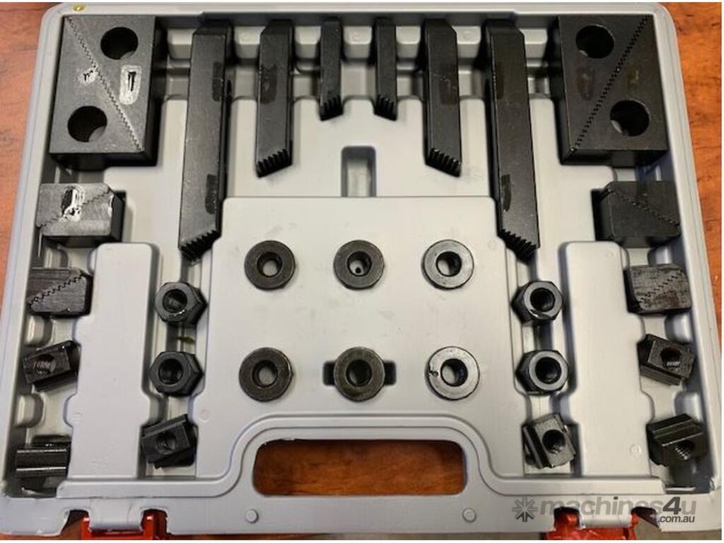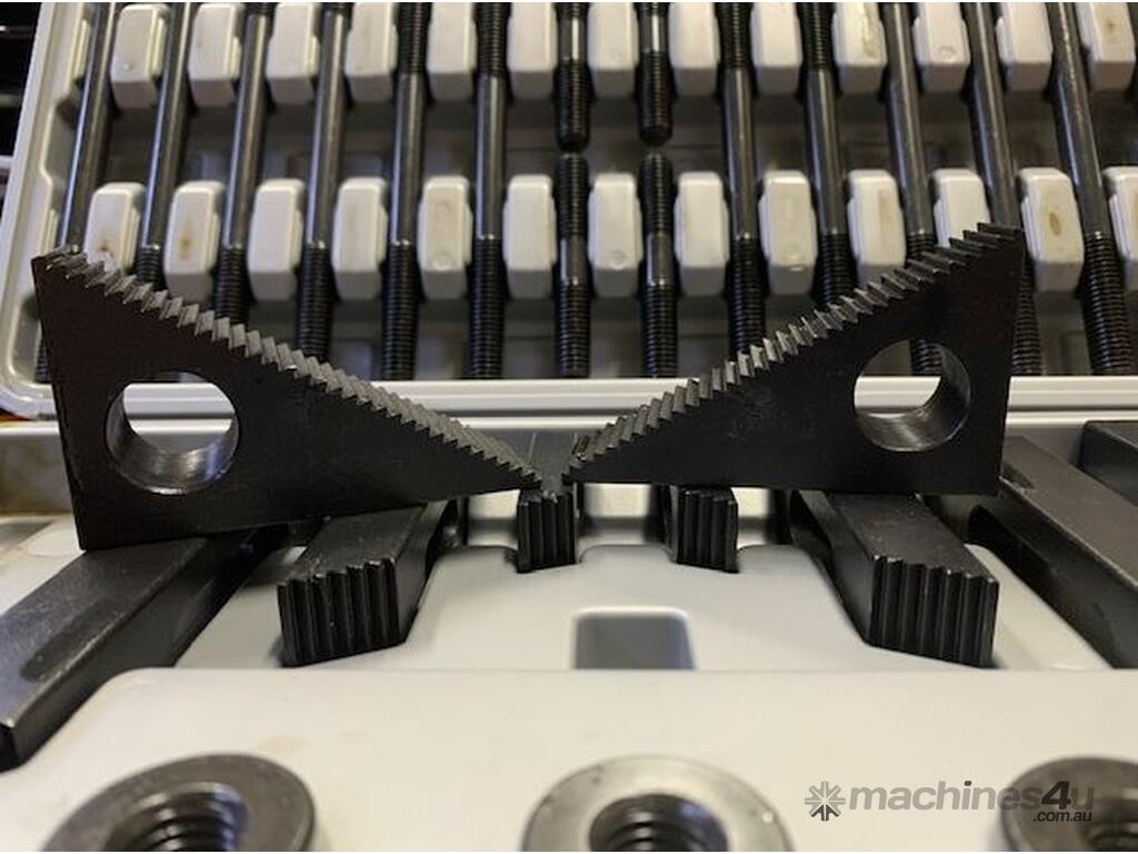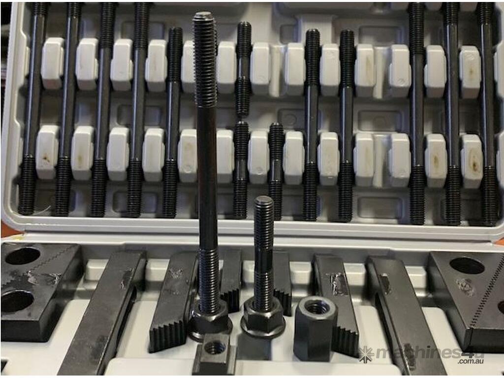Our Clamping Kits are among the best in the world! All the blocks, bolts, nuts and hold-downs are case hardened. Each clamping kit includes: 24 studs, 6 step block pairs, 6 T-nuts, 6 flange nuts, 4 coupling nuts and 6 end hold-downs.