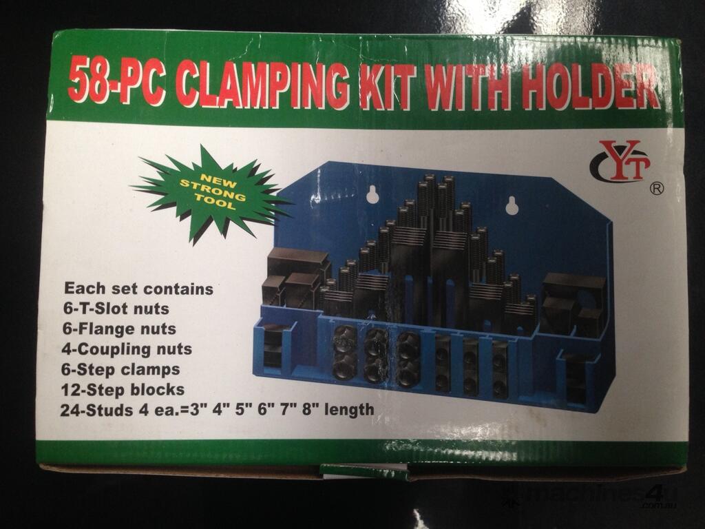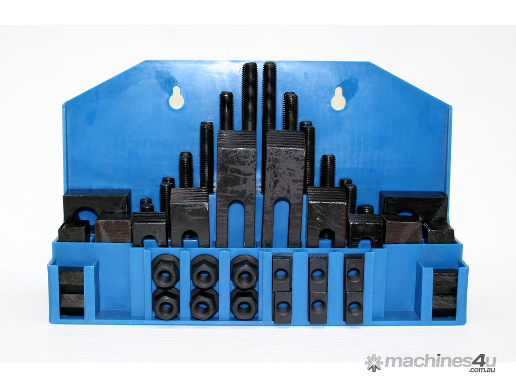 Our Clamping Kits are among the best in the world! All the blocks, bolts, nuts and hold-downs are case hardened. Each clamping kit includes: studs, step block pairs, T-nuts, flange nuts, coupling nuts and end hold-downs.