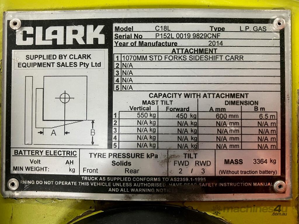 USED # Clark C18L # 1,8 Tonne Gas Forklift # 1800kg Load Capacity # 6500mm Lift Height # 1070mm Fork Tynes # Side Shift # Analogue Weight Gauge # QUICK & EASY FINANCE AVAILABLE