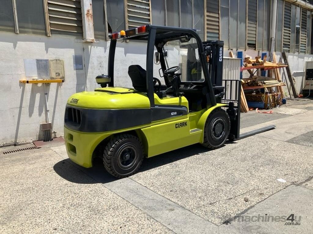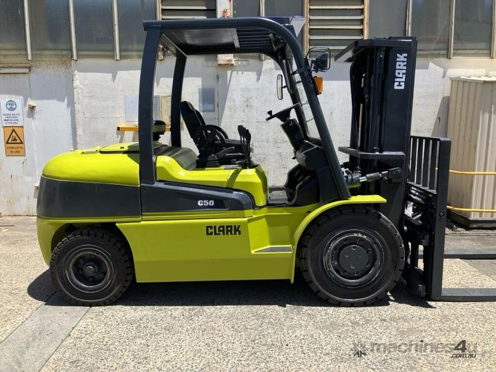 Tough Conditions ? You need a Clark C50sD – MY2018 5-tonne capacity, diesel-powered internal combustion (IC) pneumatic tyre forklift built in 2018. With features like a turbocharged 3.8L engine, a rugged frame, and advanced cooling systems to handle demanding environments. They are built to last and include multiple safety features.