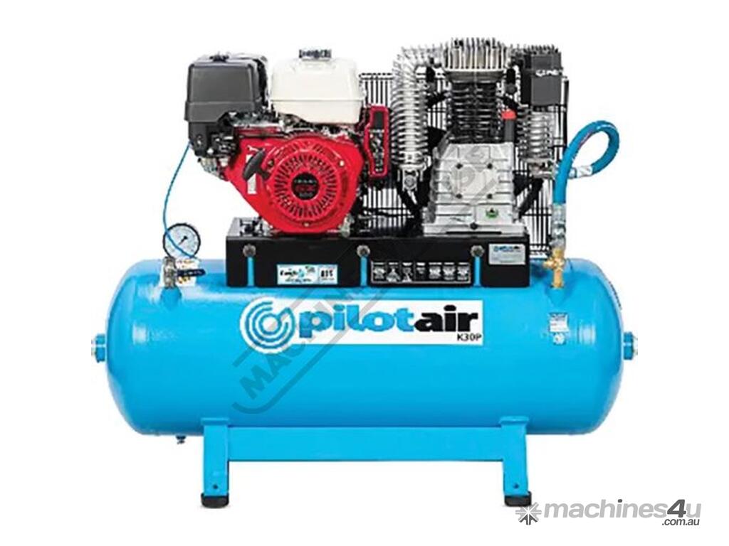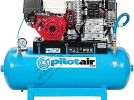 PILOT AIR COMPRESSORS Classic Industrial Series Trade Petrol Electric Start Reciprocating - Pilot Air Compressor K30P 200 Litre Air Receiver / Honda GX390 34.7cfm / 981lpm Piston Displacement