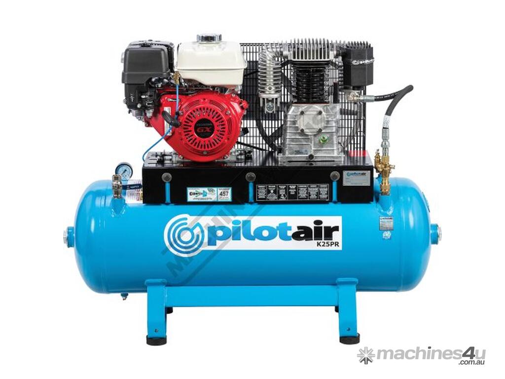PILOT AIR COMPRESSORS Classic Industrial Series Trade Petrol Reciprocating - Petrol Powered - Pilot Air Compressor K25PR 150 Litre Air Receiver / Honda GX270 21.4cfm / 605lpm Piston Displacement