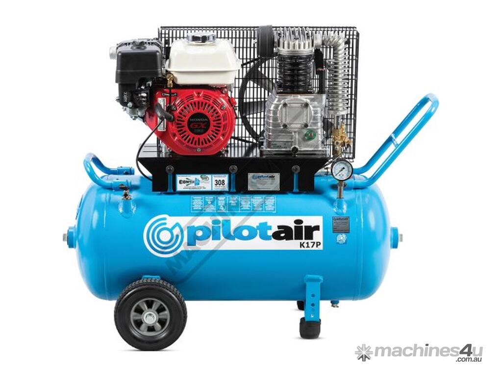 PILOT AIR COMPRESSORS Classic Industrial Series Trade Petrol Reciprocating - Pilot Air Compressor K17P 100 Litre Air Receiver / Honda GX160 16.3cfm / 463lpm Piston Displacement