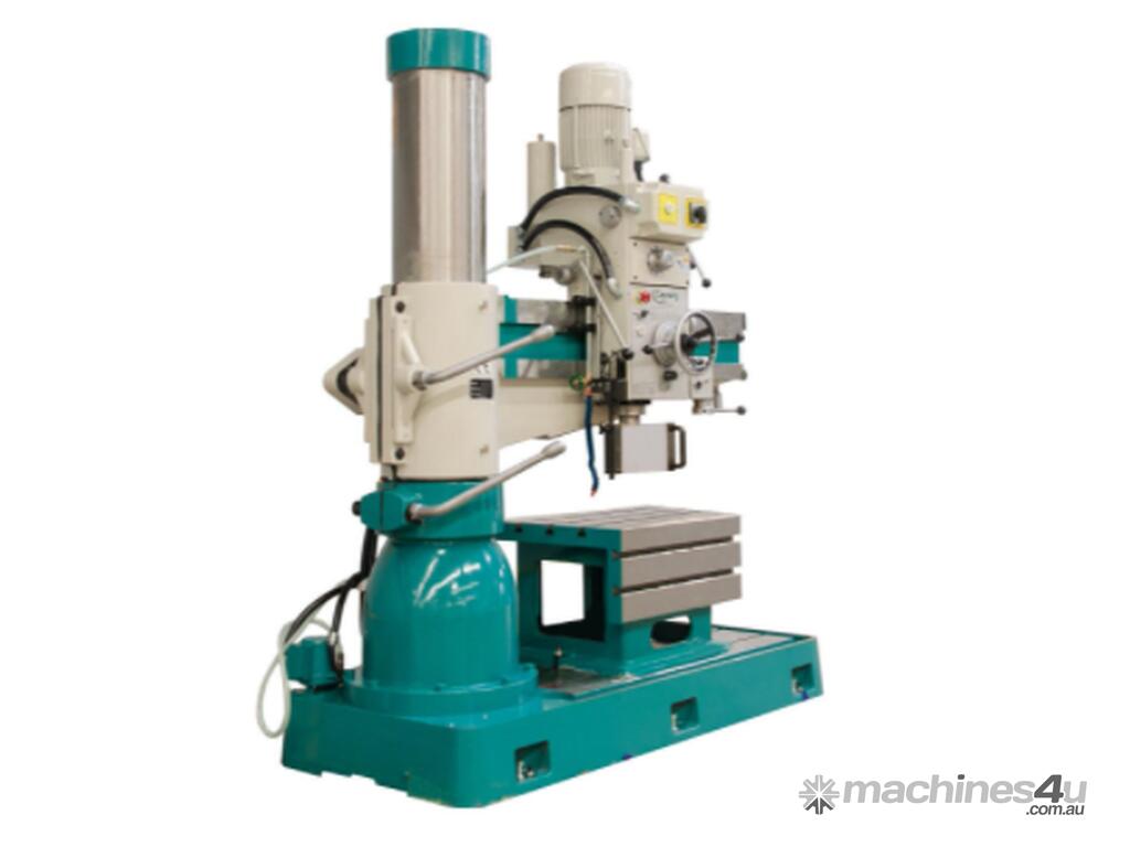 Radial Arm Drills allow for drilling and boring small to massive holes in large oversize workpieces. Clausing’s Radial Drill design allows for the spindle head to move along the length of the arm and the arm height to be adjusted and rotated. This allows for precise drilling along many angles.