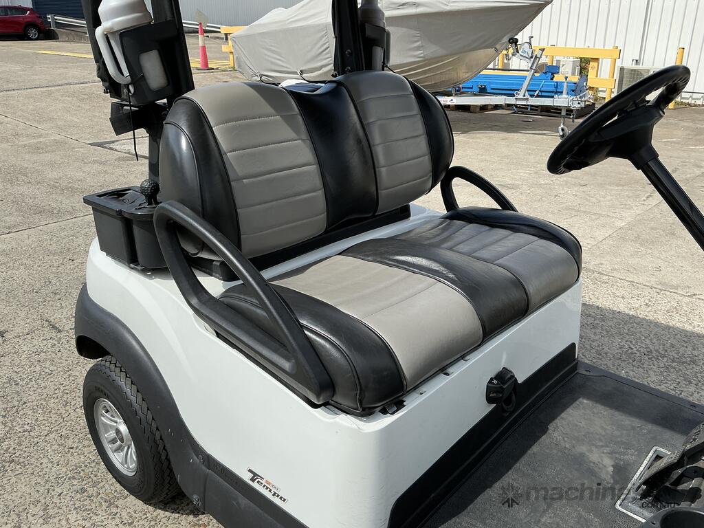 No C/P,Club Car,Tempo,Electric 2 Seat Golf Cart,Engine #: N/V,Electric,Odometer not visible,Hourmeter not visible,Colour: White,Unregistered,Serial No: ZU,Sold with No Plates