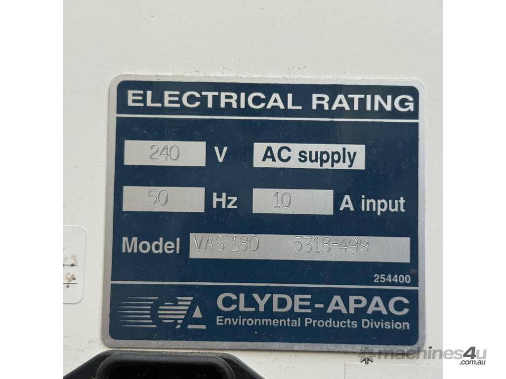 Industrial Clyde-Apac VAS 180 clean air / environmental control unit, designed for controlled airflow, filtration, and containment applications. Commonly used in cleanrooms, laboratories, pharmaceutical environments, and controlled work zones.