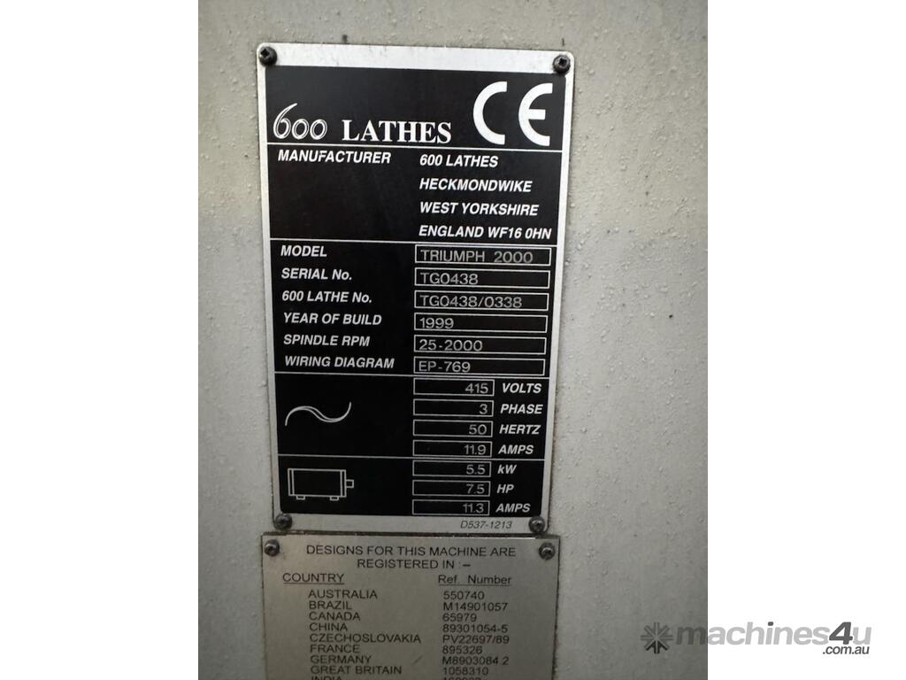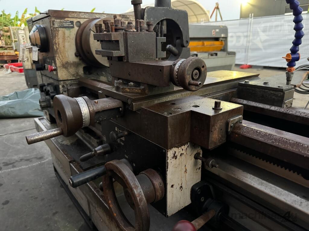 A reliable, high-performance lathe in original condition. Features include a 400 mm swing, 1250 mm centers, 54 mm spindle bore, and speeds ranging from 25-2000 RPM. Equipped with a 3/4 jaw Pratt chuck, steadies, quick change tool post (Q/C), and DRO.