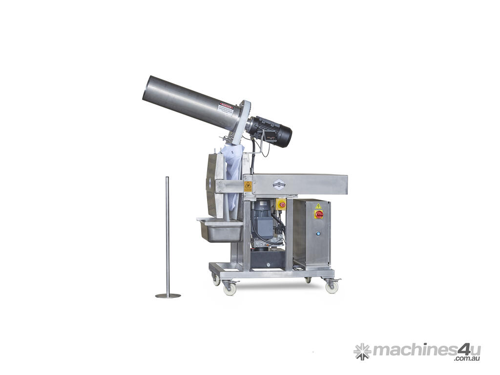 Fruit or Veg is loaded into the stainless steel chute which directs the fruit down into the shredder, once shredded it falls into the specially designed filter bag, then the juice can be pressed out of the bag easily with the touch of a button.