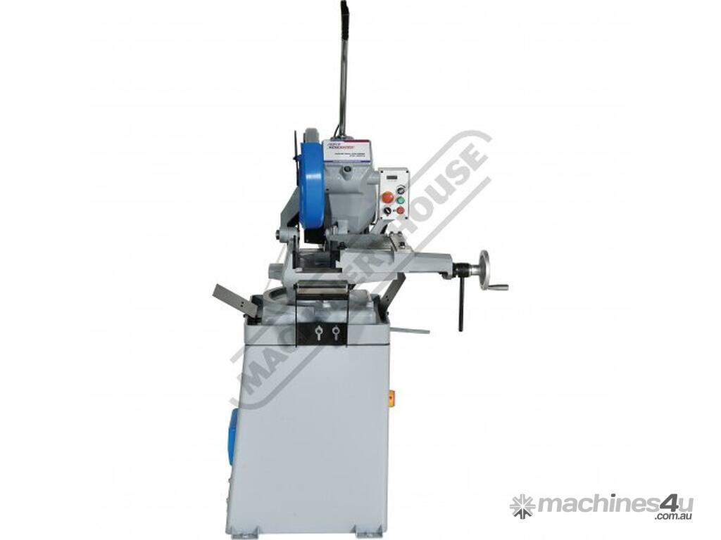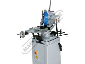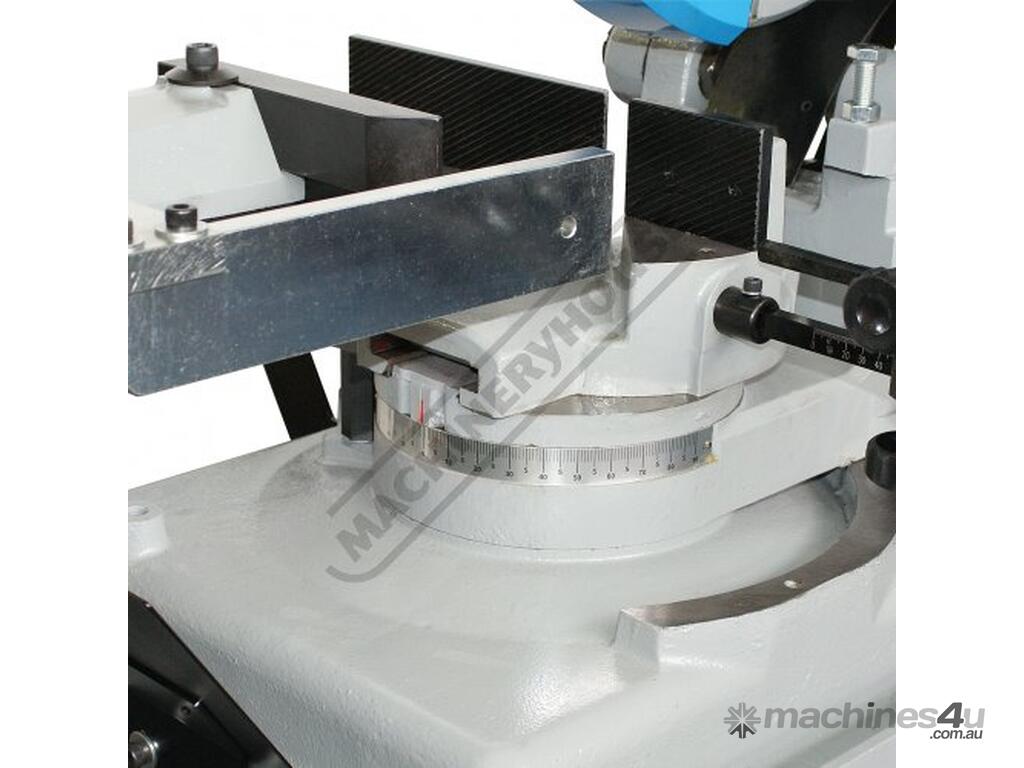 The latest 240 volt Hafco MetalMaster manual cold saw consists of a 350mm circular saw blade that can run at 24 to 120rpm via a electronic variable blade speed control and also incorporates a coolant system with an adjustable flow control valve. These cold saws are designed to cut at 90º, or mitre up to 45º in either left or right side of the material simply by releasing the lever located at front of machine and swivelling the head to the desired angle. Each machine comes standard with a very heavy and strong cast iron frame base with a cast dual pivot saw head supported by an industrial swivel base system, which makes this MetalMaster cold saw one of the most rugged machines on the market.