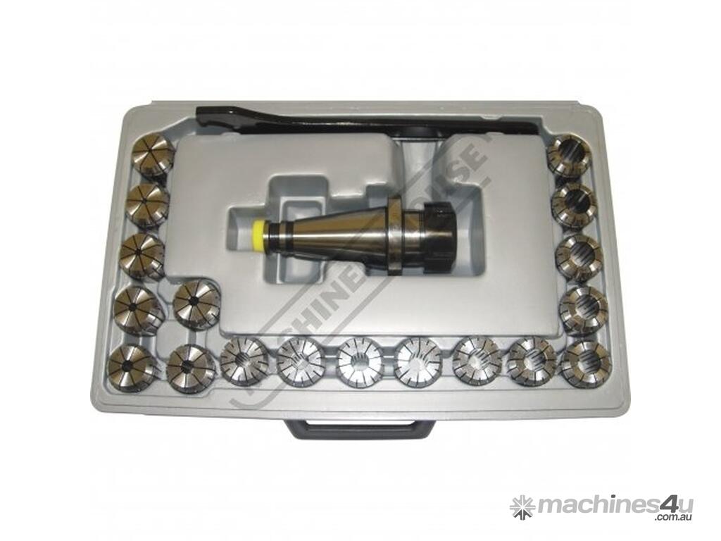 Precision NT40 collet chuck complete with a full set of ER32 collets.