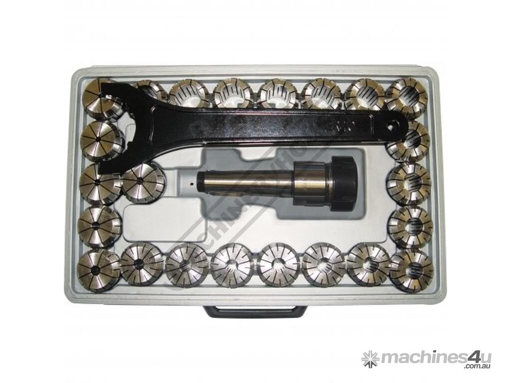 Precision MT3 collet chuck complete with a full set of ER40 collets.