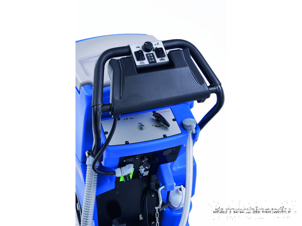 Easy to operate without interruption of the working times with rugged mechanics instead of electronics: two functional switches on the handlebar, mechanical lowering of brush and squeegee tool.