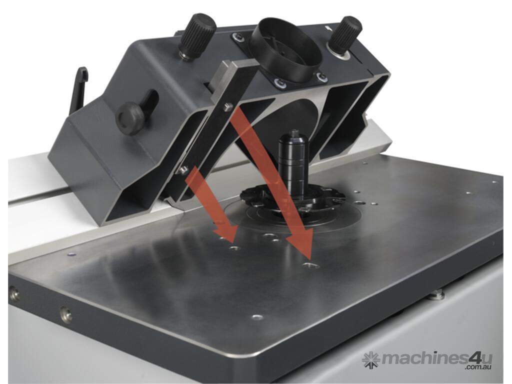 - Moulder spindle tilts 90° to 45° rearwards - adjusted using the handwheel