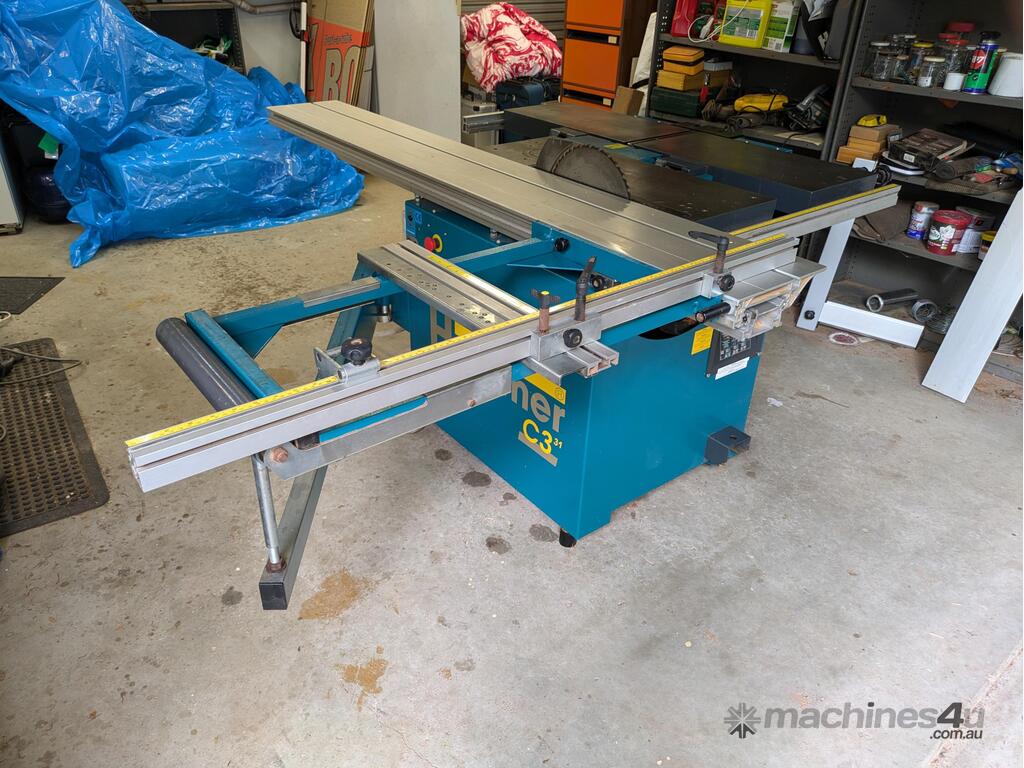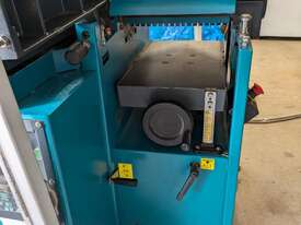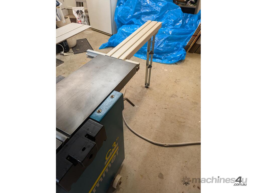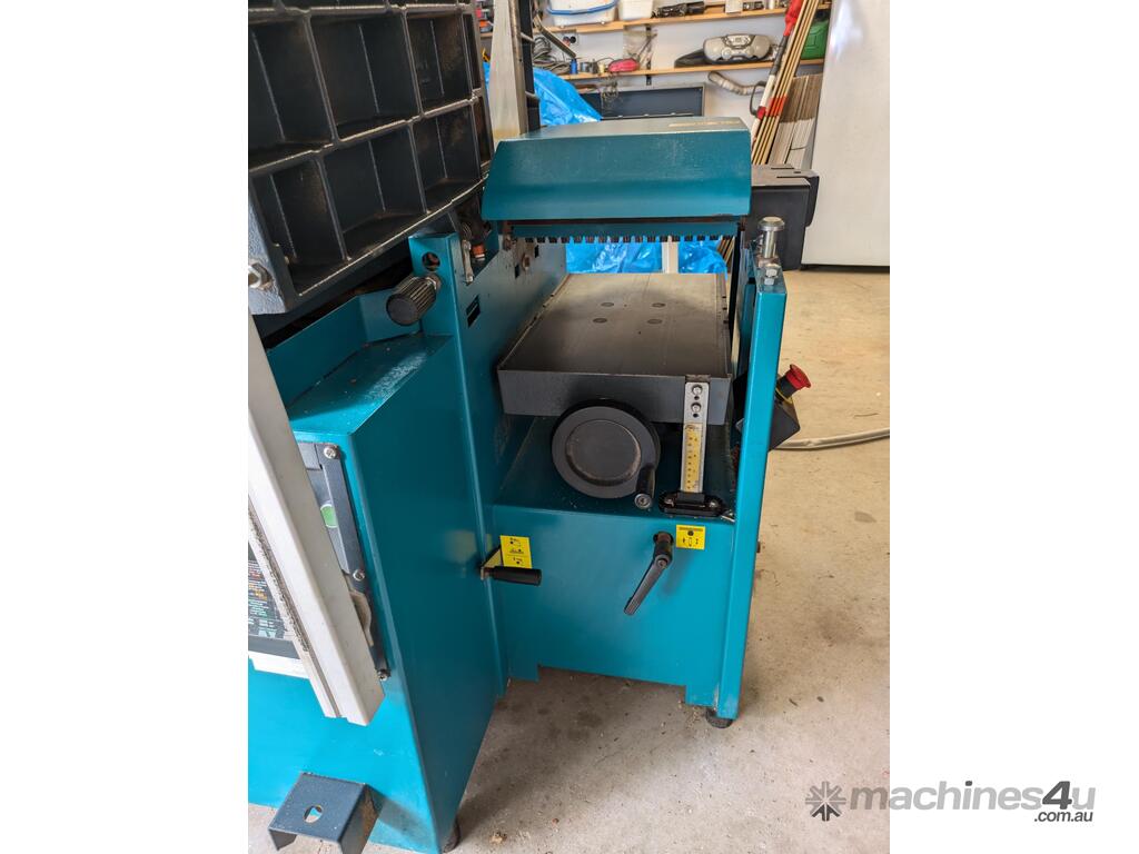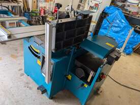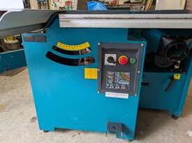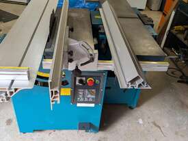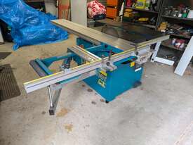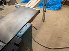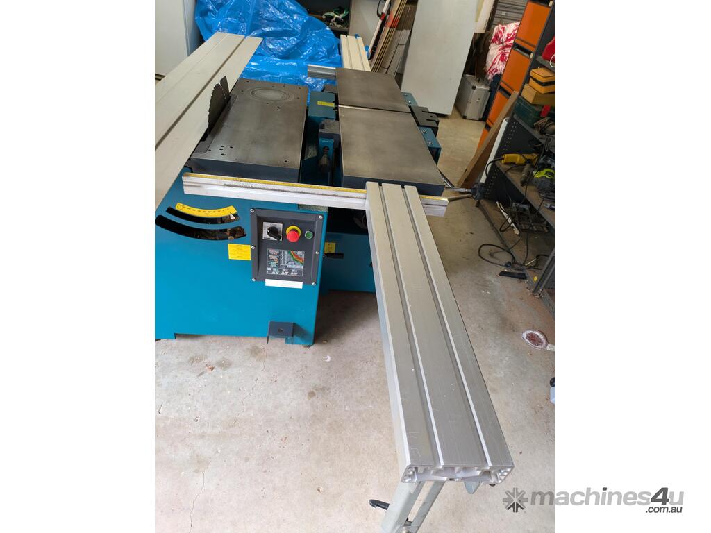 Combination table saw, thicknesser/jointer, with crosscutting outrigger, tie downs for saw table, extensions for infeed and outfeed tables for thicknesser/jointer, spindle moulder attachment, with multiple cutting shapes, rip and crosscut saw blades, and under sheet blade for eliminating tear out when cutting MDF or plywood panels. Two fences - one adjustable from 90 degrees, and the other set at 45 degrees. Both fit the saw table and the jointer/thicknesser