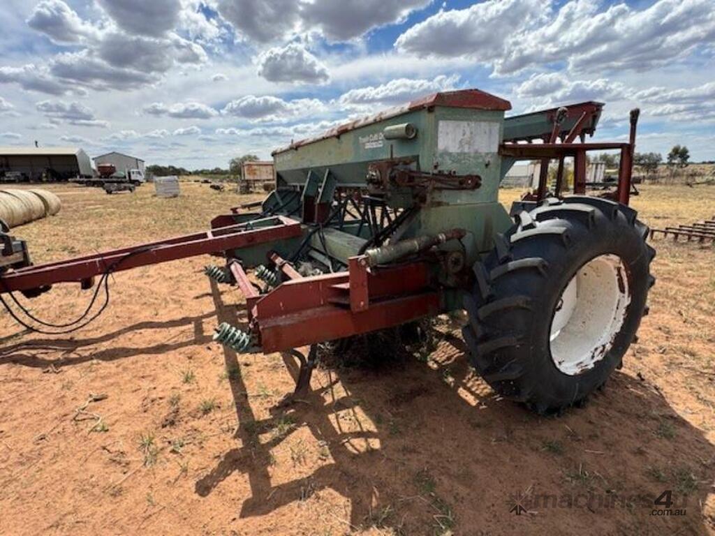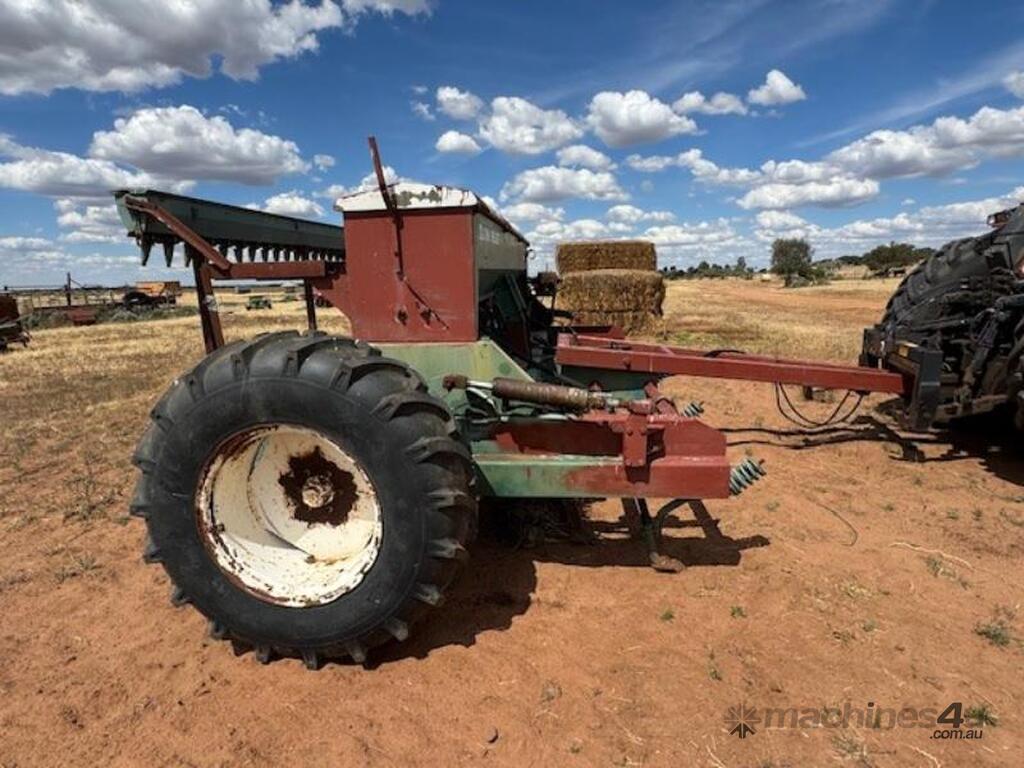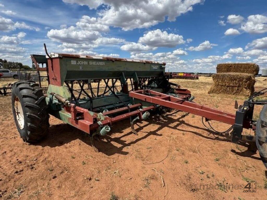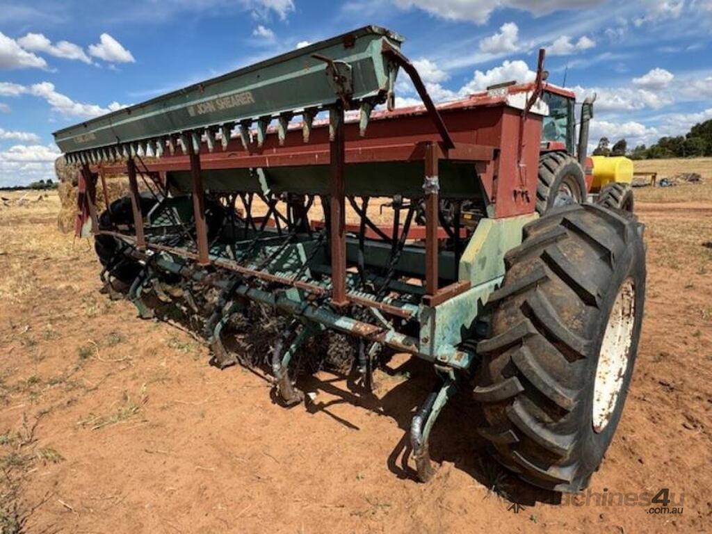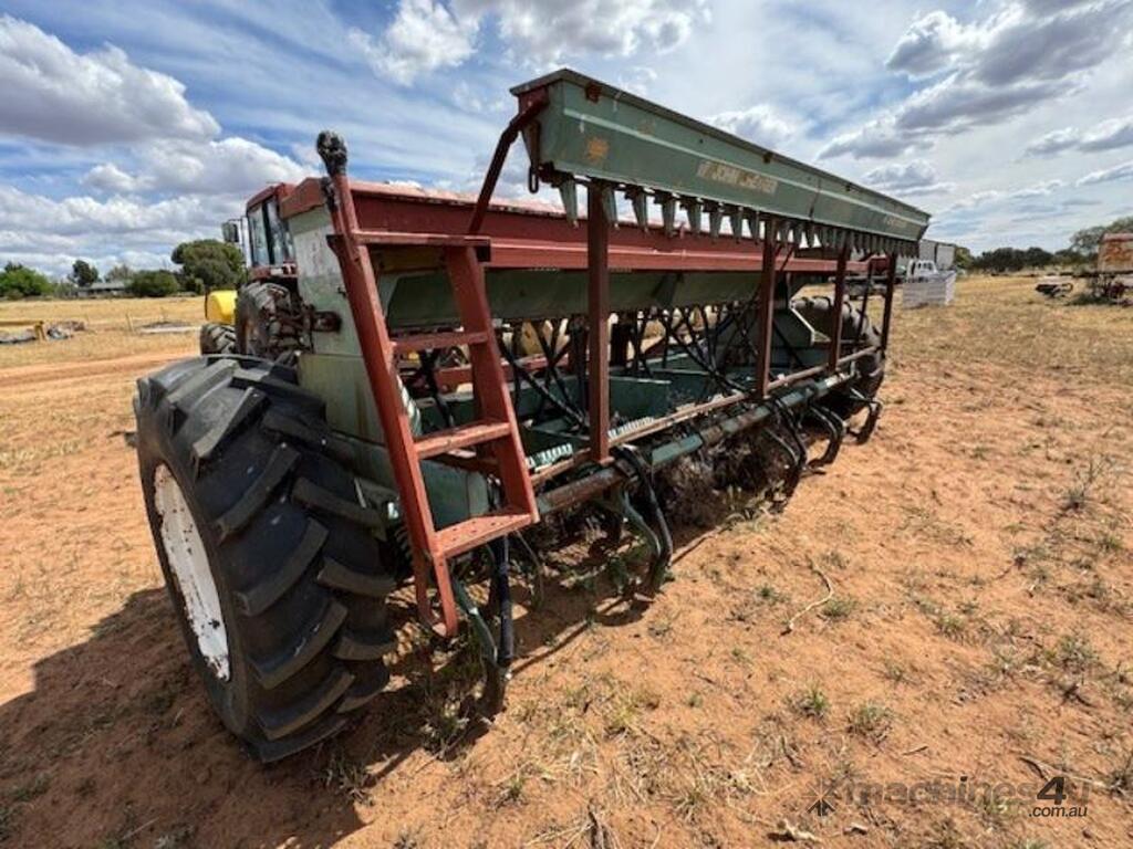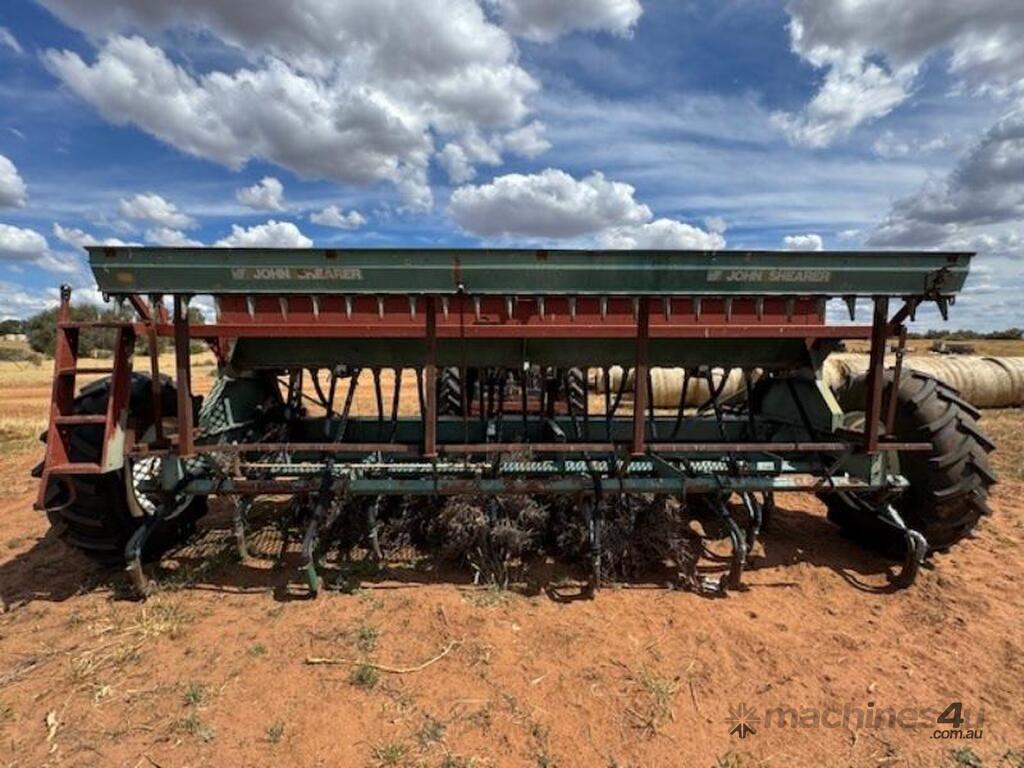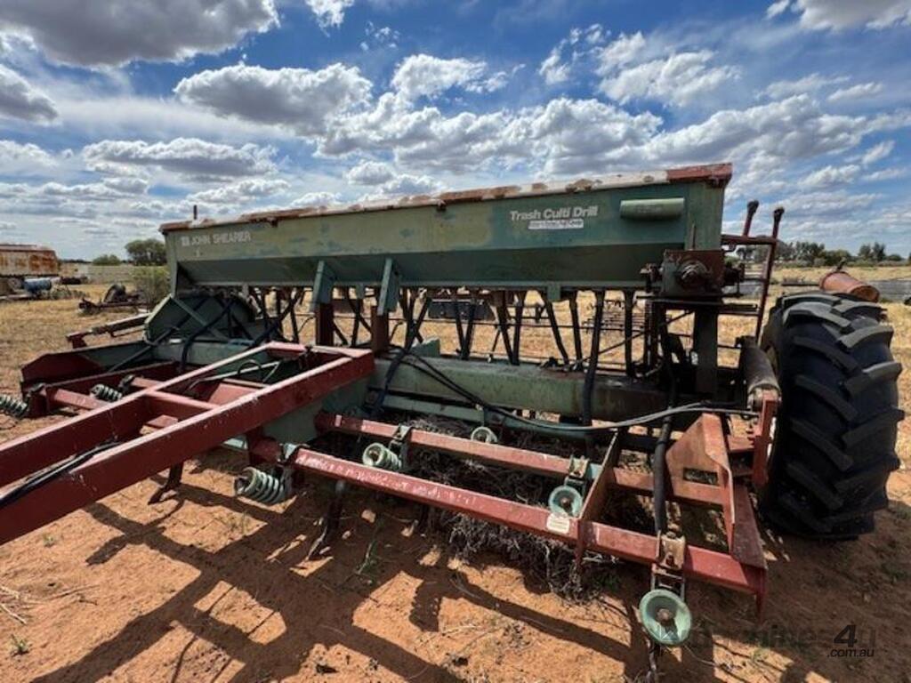 John Shearer 27 run 6 row, Trash Culti Drill, knife points, elevated boxes, small seeds box.