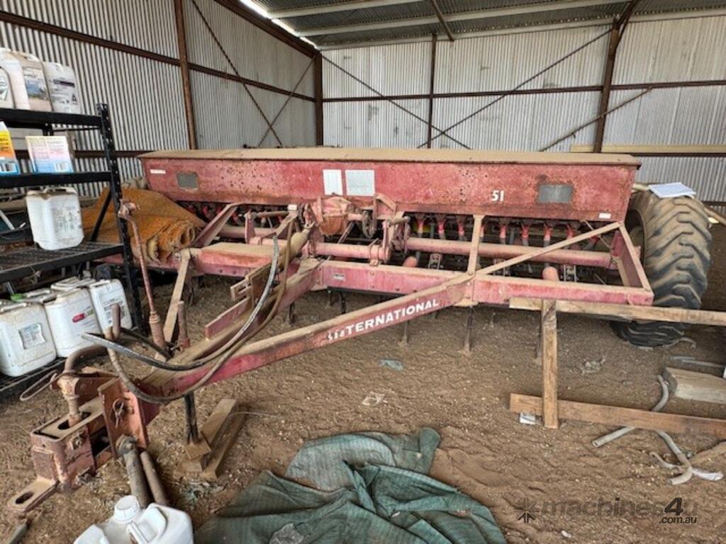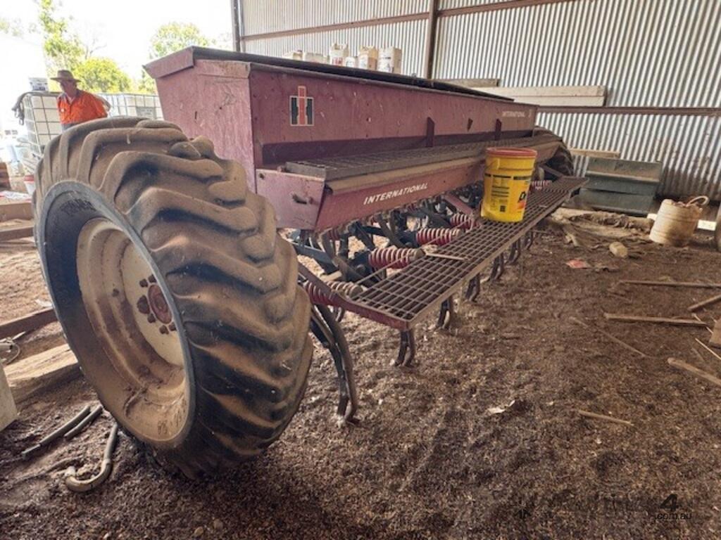 Inter 511, Johns undercarriage, spring tyne, sweeps, small seeds box, drawbar removed, excavator on site to load, needs work, refer photos.