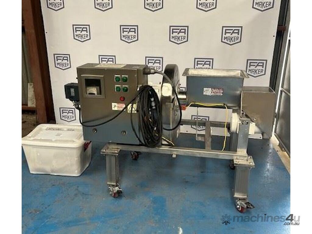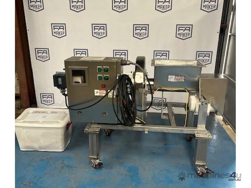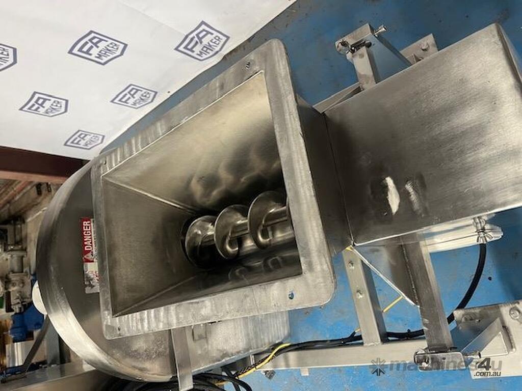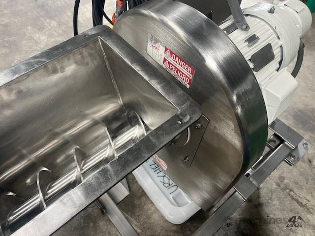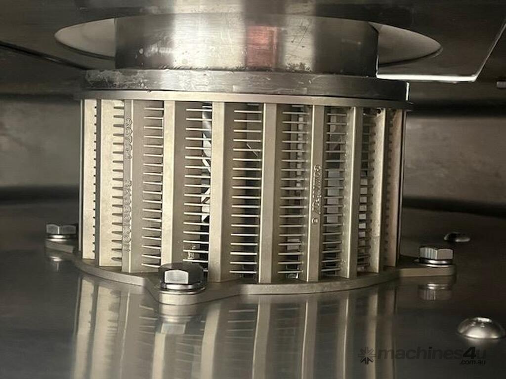 The Comitrol 3600 is equiped with a 7.5 kw drive motor and screw feeder 1.5kw with a VSD. The machine is commonly used as a pre cutter. Common applications for size reduction are bakery rework, beef,poulty,seafood, fruit and vegetable. Stainless steel construction ensures durability and sanitstion. The machine features continuous operation for uninterrupted production and is designed for easy clean and maintenance. Product input is dependent of style of reduction head,impeller selection and spacing within the head. Generally, maximum input size in any dimensions should not exceed 63mm. Different types of products include Avocado paste Bread granulation Hummus Pineapple puree Garlic Granola/fruit/nut mixtures Kale onion puree fish waste Dried chilli Spare cutting heads are availble.