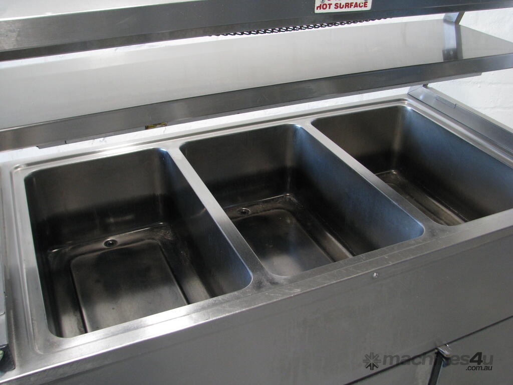 It has 3 heated bays and there is also heated cupboards underneath. Each section has it's own temperature control setting.