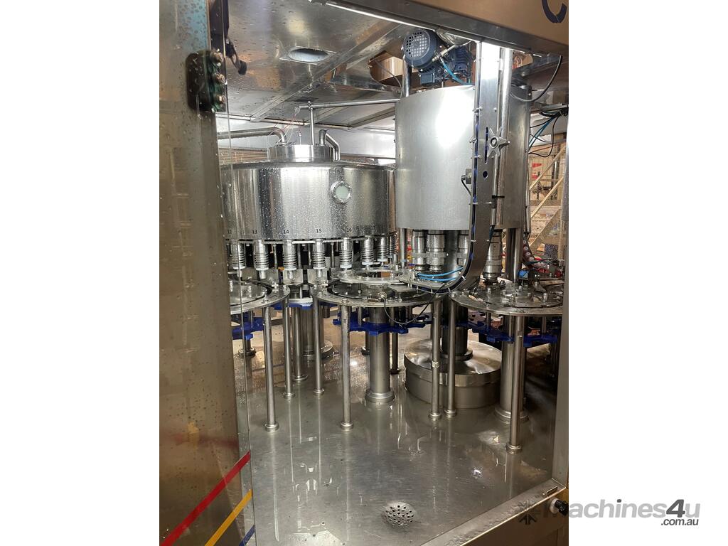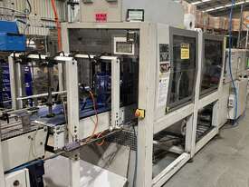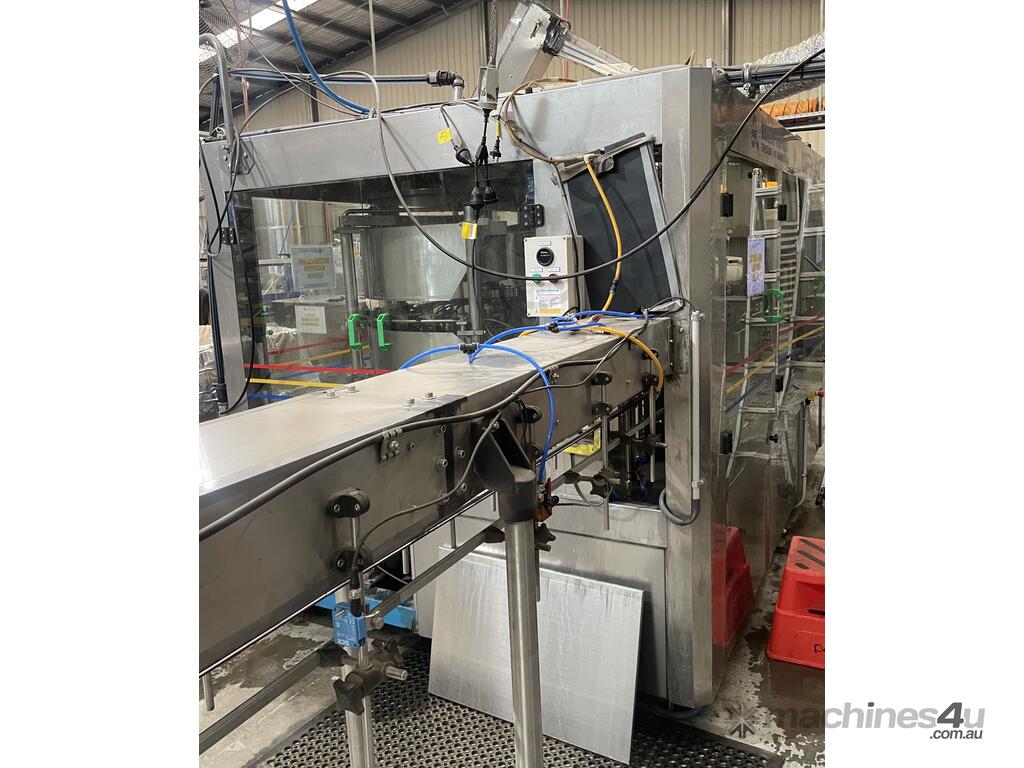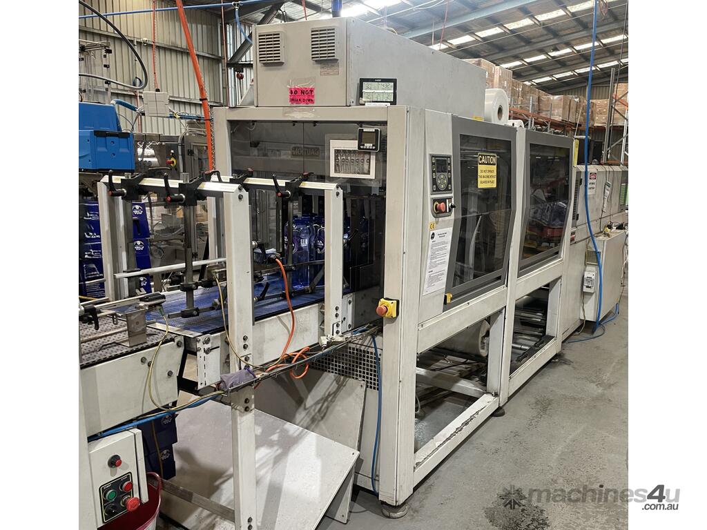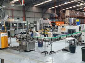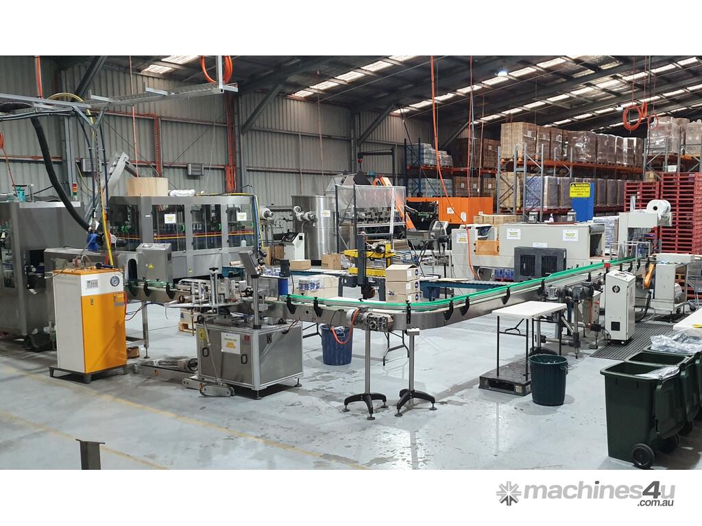 This line is in great working condition and is just coming out from production. It was making PET bottles, filling them with water, labeling them and wrapping multiple into packs.