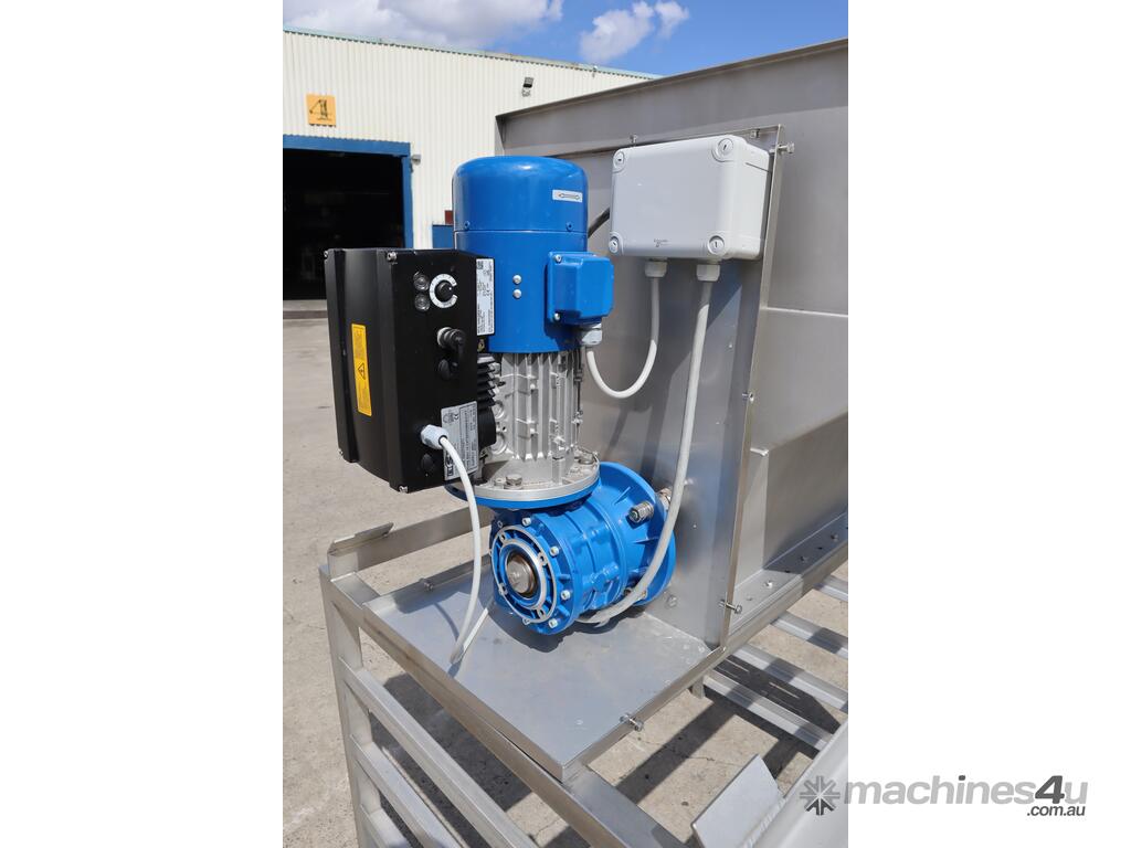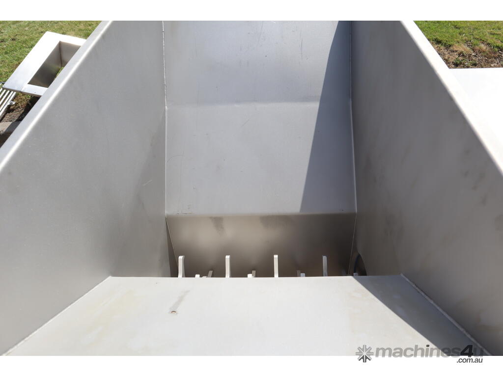 "This industrial machine may be suited for processing tough materials such as large pieces of meat, bones, or ice. It may serve industries including meat processing, cold storage, and food preparation, or businesses that handle frozen products. The pre-breaker’s hook-like blades may help pull and break down materials into smaller pieces for further processing. It could potentially benefit businesses by improving the efficiency of breaking down tough, solid materials for easier handling and further refinement."