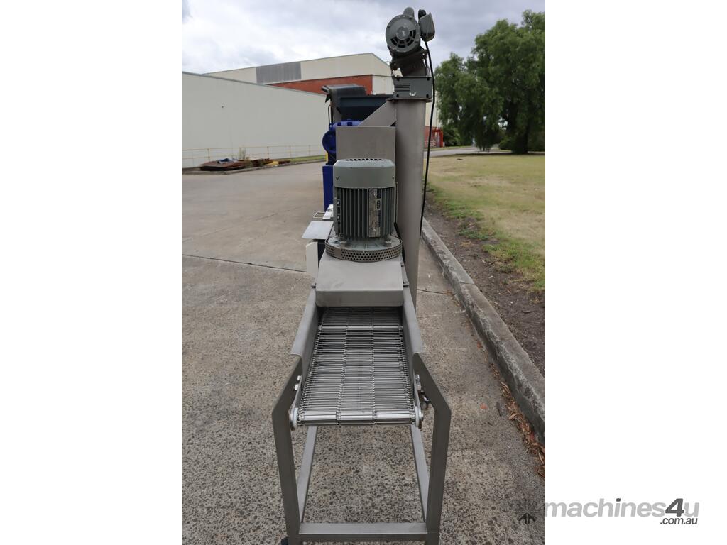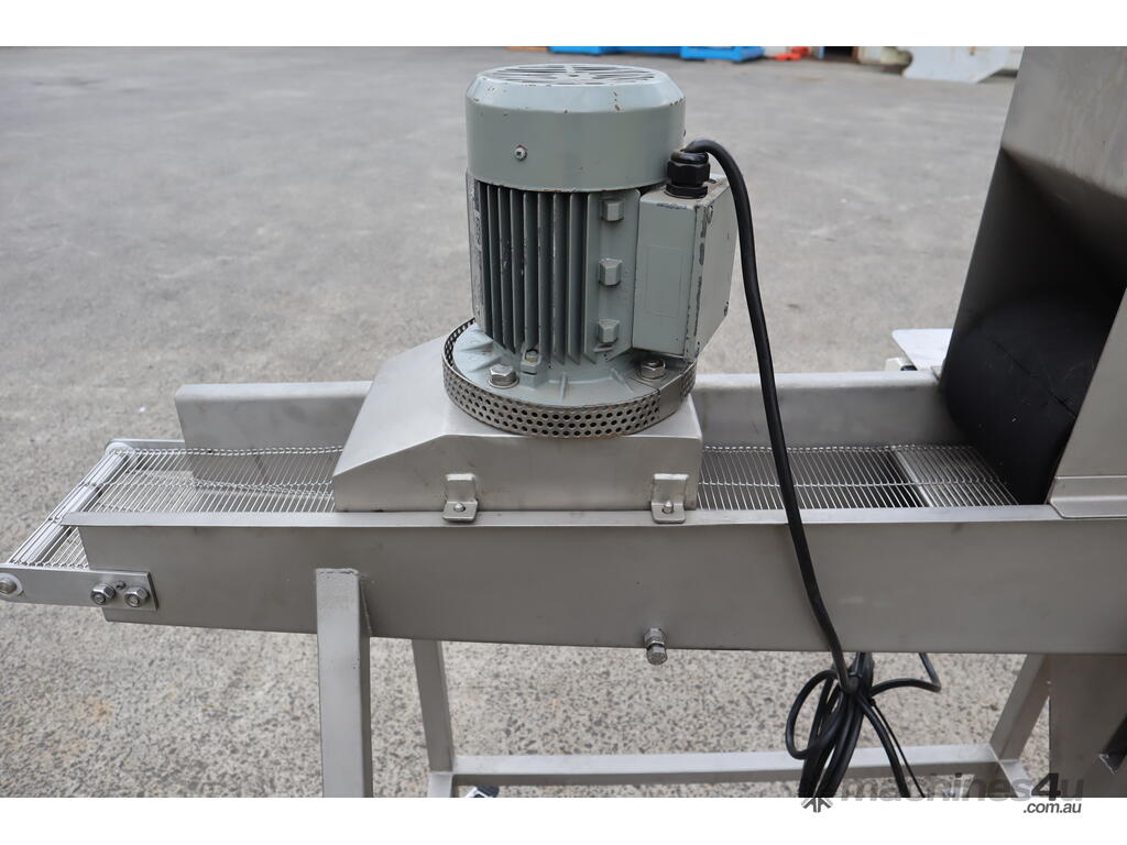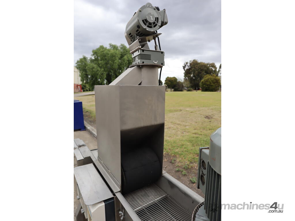 Ideal for crumbing lines in food processing facilities, this conveyor features a 3-motor system and a chain-link mesh design for efficient material handling. It's equipped with precise deposition capabilities and a blower/dryer for consistent product quality and smoother production.