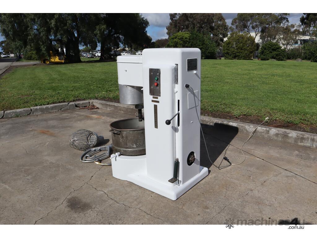 - Description: Commercial-grade planetary mixer with attachments for mixing dough, batter, and other food products.