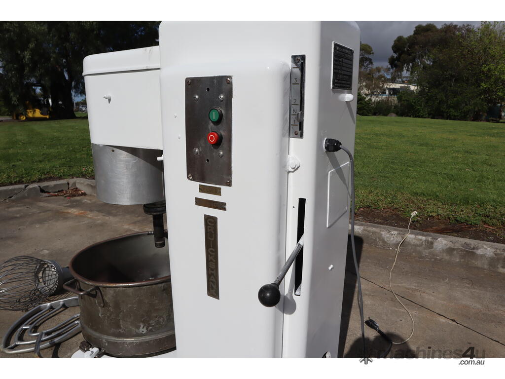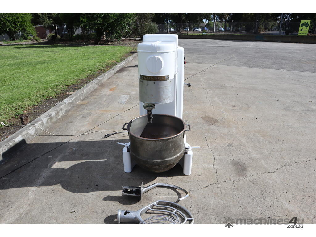 "This James Cruickshank Ltd Consul planetary mixer may be ideal for industrial kitchens, bakeries, or catering businesses requiring reliable and consistent mixing of dough, batter, or other food ingredients. It may serve industries including food preparation, baking, and hospitality. The mixer may benefit businesses by increasing efficiency in preparing large batches of food products, and it functions by rotating attachments inside the mixing bowl, which knead, whisk, or mix ingredients thoroughly."
