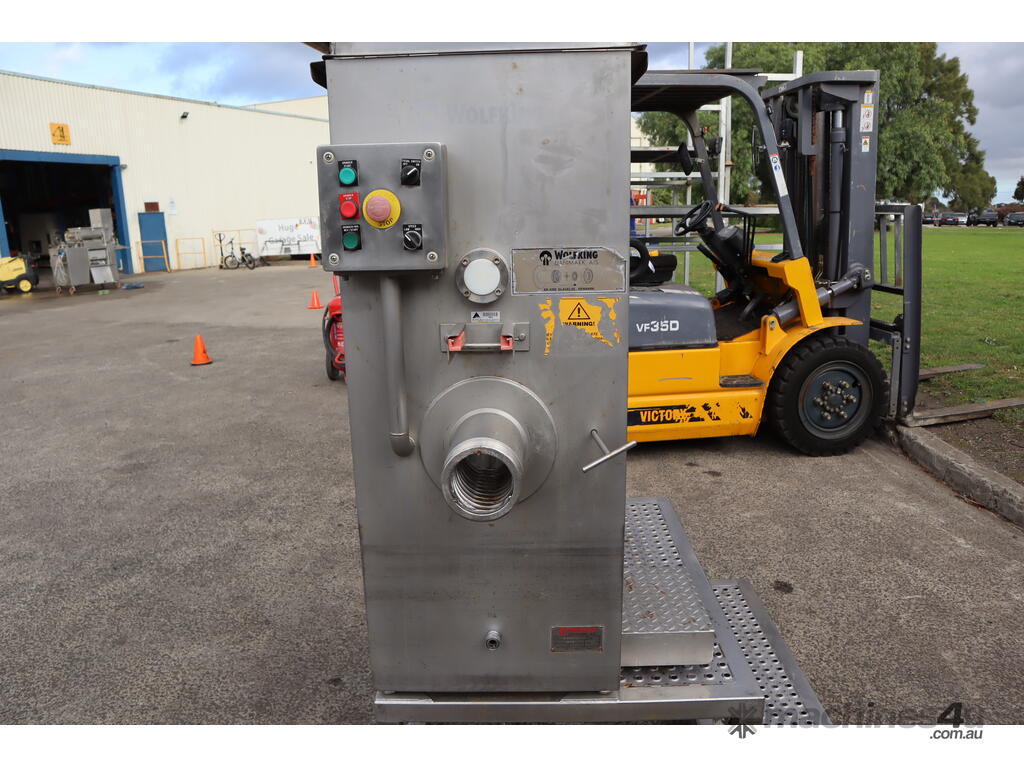 Please note: It is missing the panel cover for the electrical box and it is also missing the mincer plate assembly that attaches at the end of the discharge outlet.