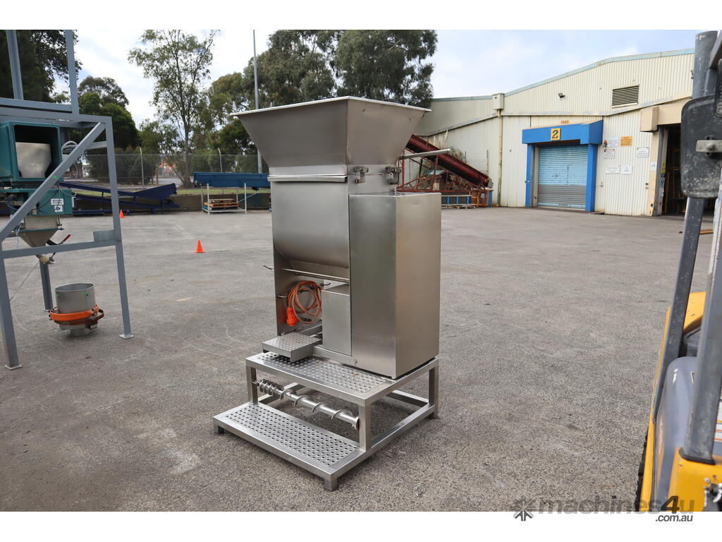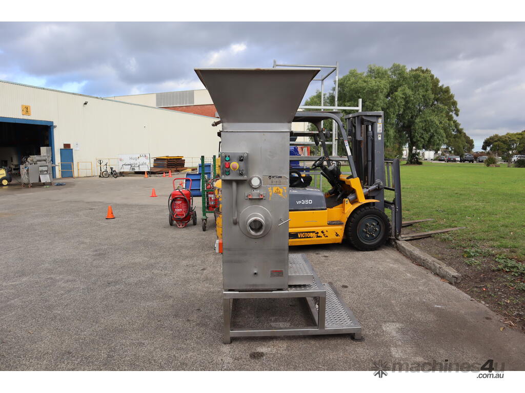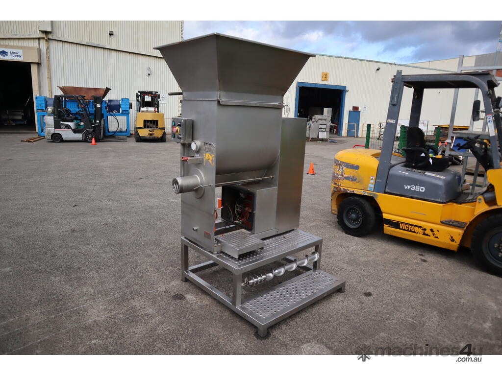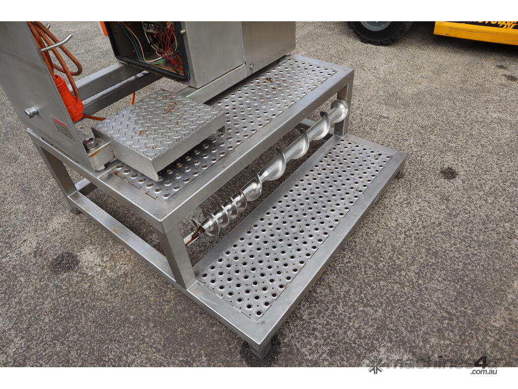 Please note: It is missing the panel cover for the electrical box and it is also missing the mincer plate assembly that attaches at the end of the discharge outlet.