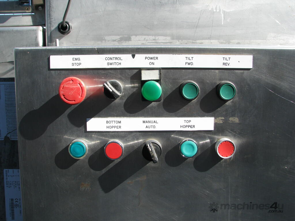 Once the product is mixed and ready you can tilt the tank to tip the contents into the hopper.