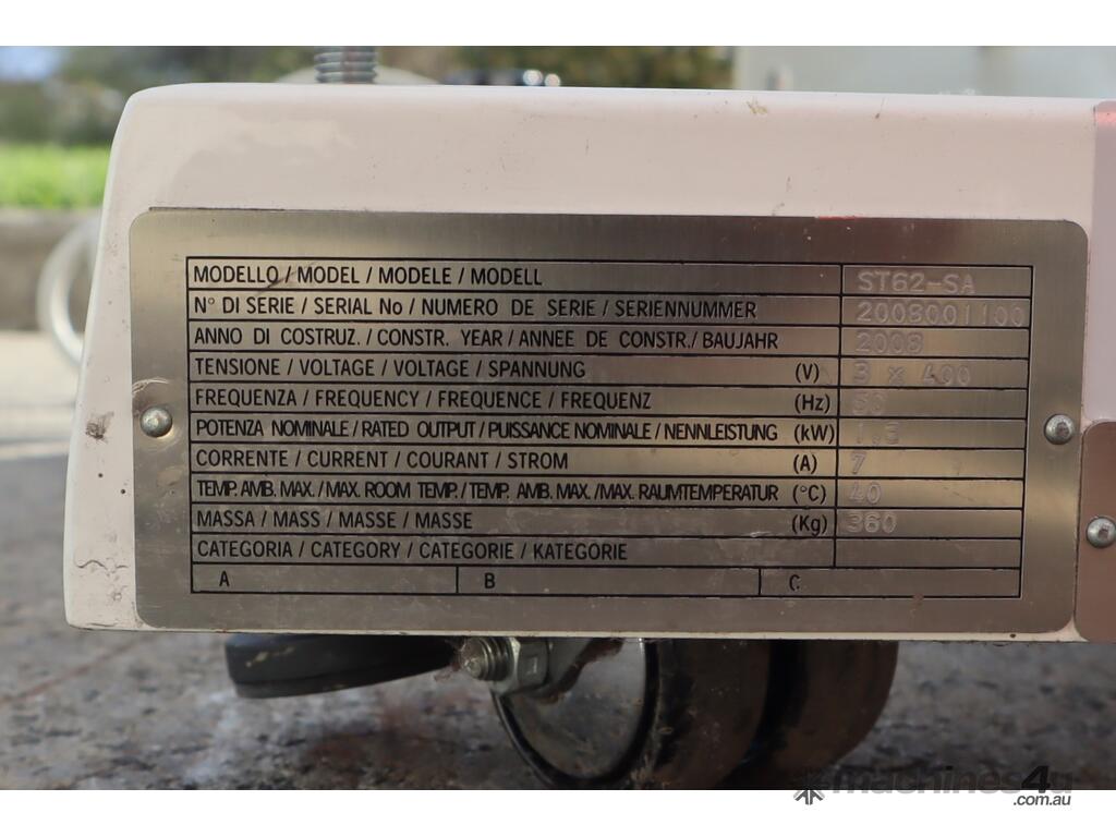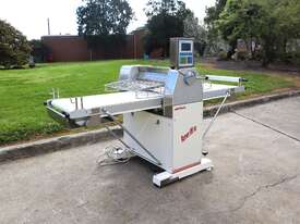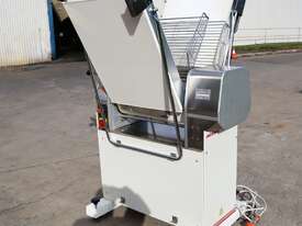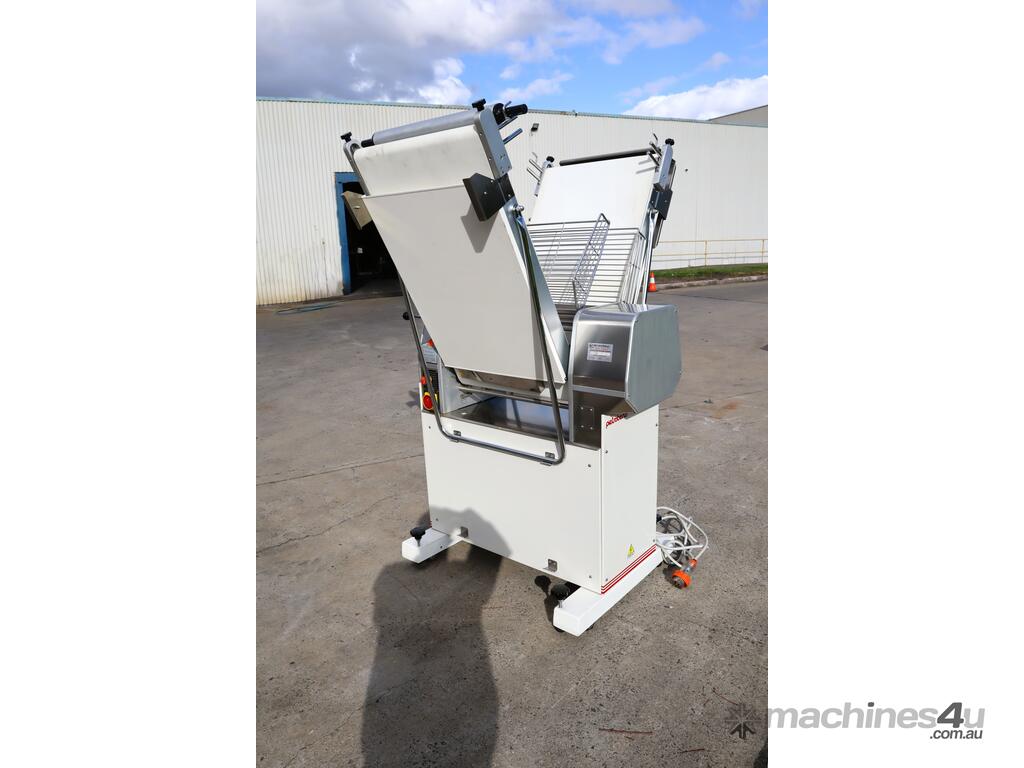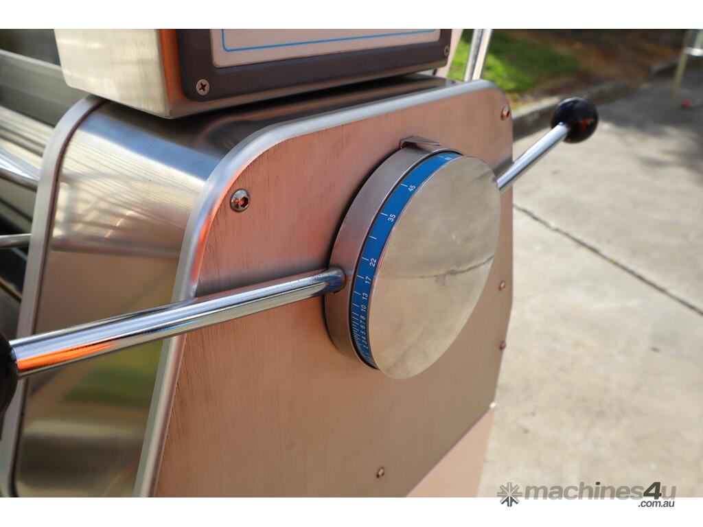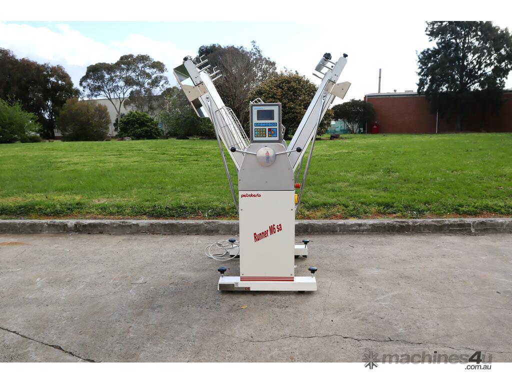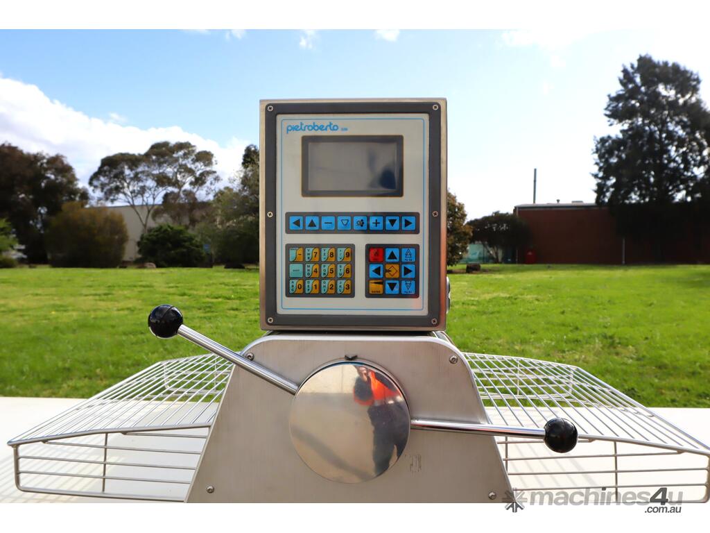 Italian built semi-automatic dough sheeter designed for accurate and repeatable lamination of pastry, pizza, and bakery doughs etc. The Runner M6 SA features a programmable digital control panel for belt direction, roller gap, and automatic cycle sequencing. Dual-speed operation provides precise control for progressive reduction, while the 0.2 – 60 mm roller adjustment range delivers uniform sheet thickness. Built in 2008, this model combines industrial reliability with easy sanitation and safe, ergonomic operation.