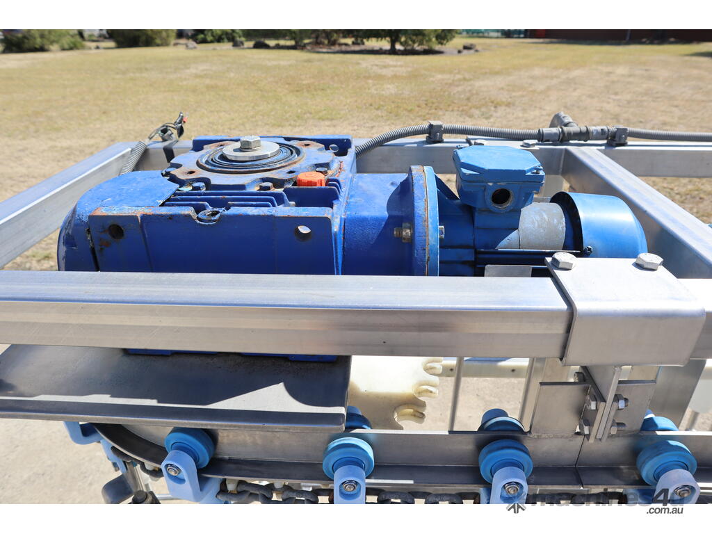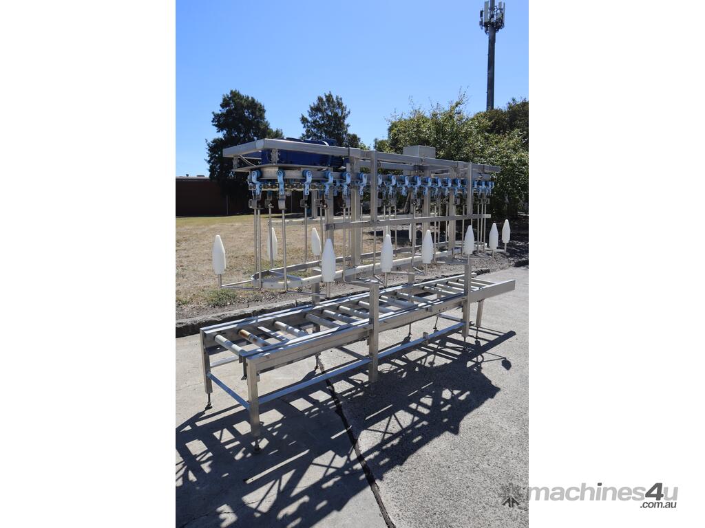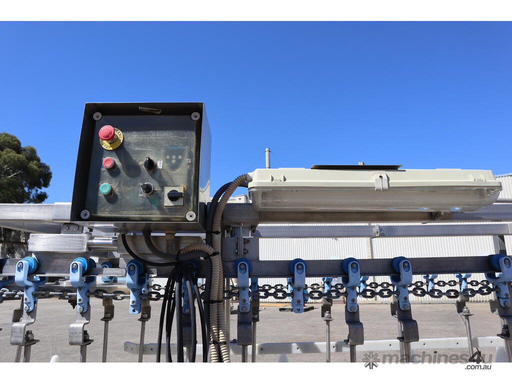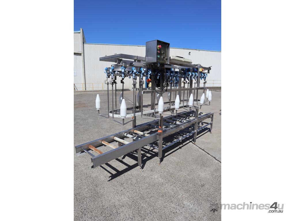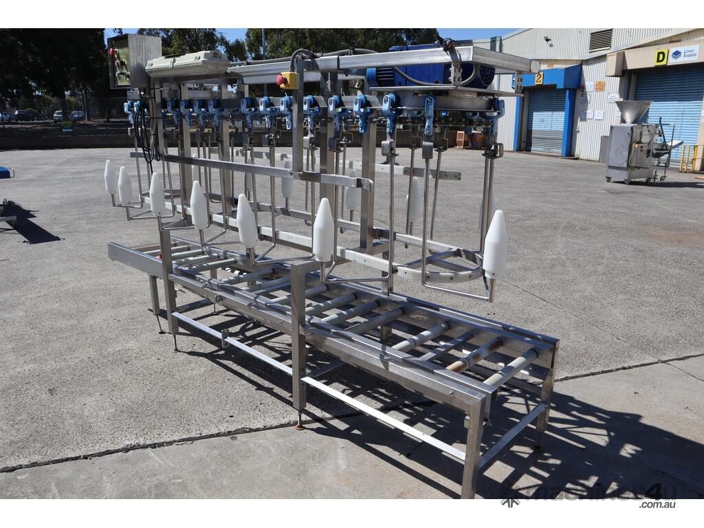 Chilled carcasses are placed on plastic cones mounted on hangers. The hangers screwed to the chain conveyor trolleys are additionally supported in guides to maintain the stability of the set during the operation. The speed of the line is smoothly regulated and can be adapted to current needs.