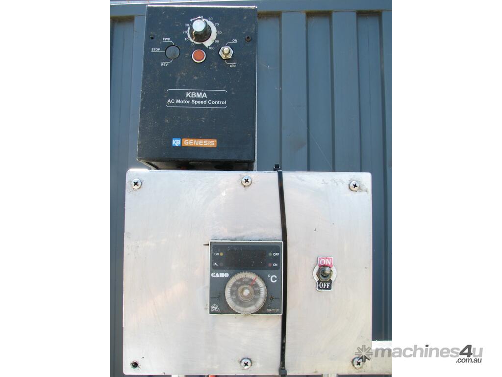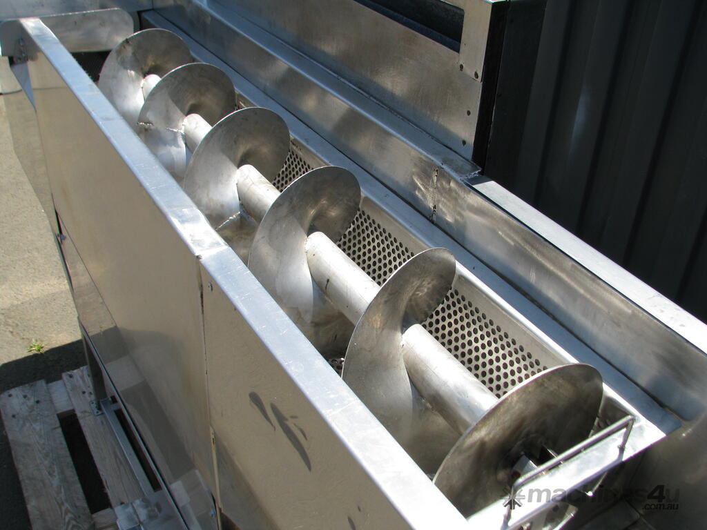 It's a deep fryer for production, the contents start from one end of the screw and fries until it gets to the other end which has a scoop to pull the contents out of the fryer and down the tray/chute.