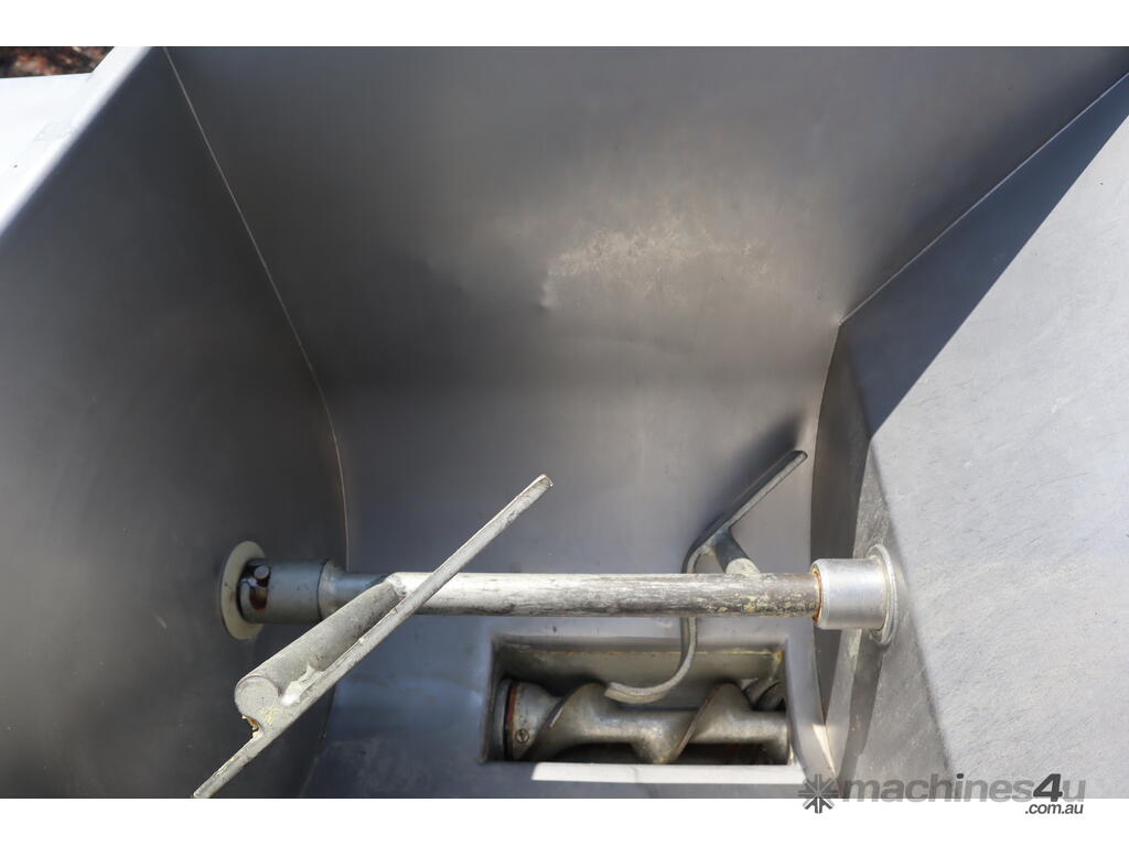 The BIRO AFMG-24 Mixer Grinder is an ideal mixer grinder for today’s compact supermarket meatroom. It’s 5 hp/3.7 kW auger motor, 66 kg hopper, and size 32 head can give you an output of up to 31 kg per minute for the productivity you need. Comes with a pneumatic footswitch. The heavy duty stainless steel hopper, frame, and legs will stand up to years of daily washdown and still resist corrosion.