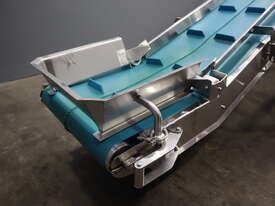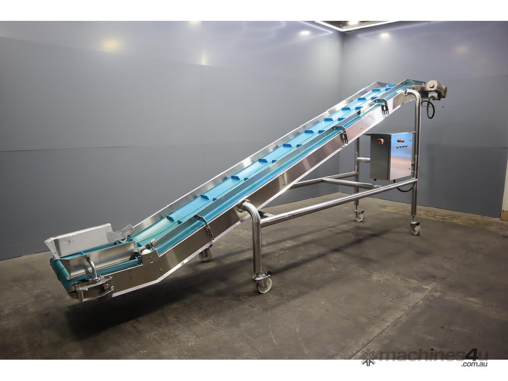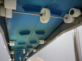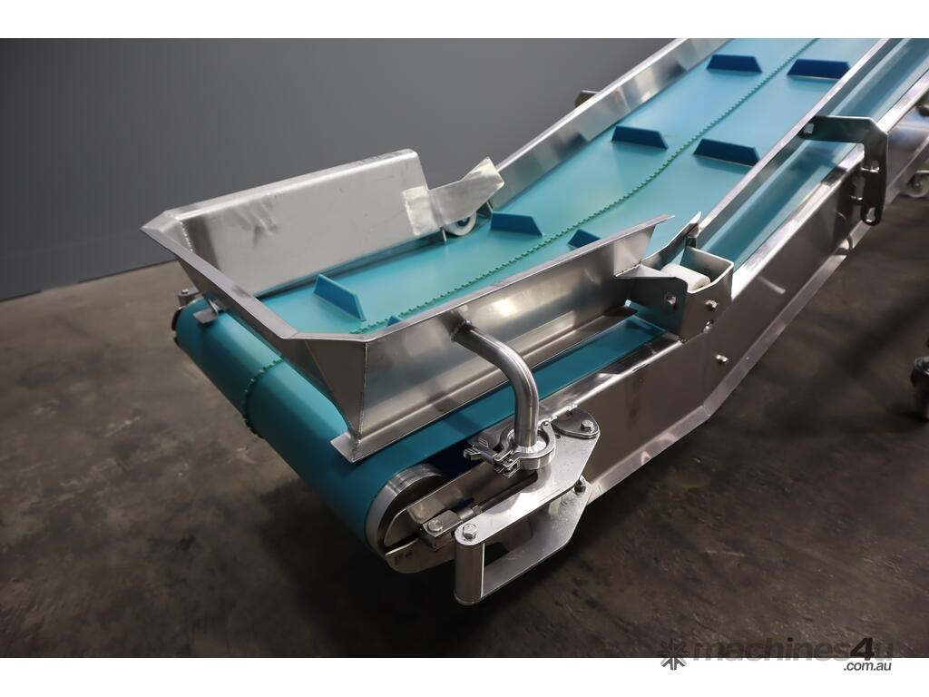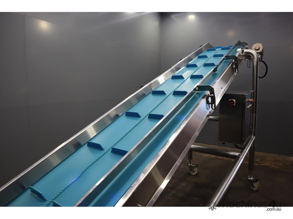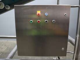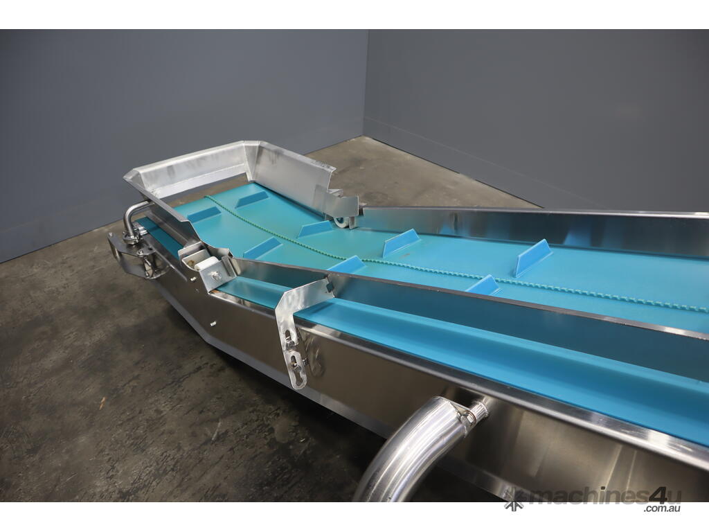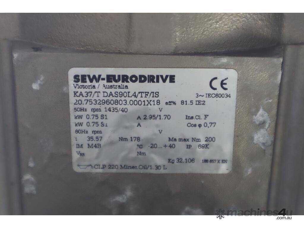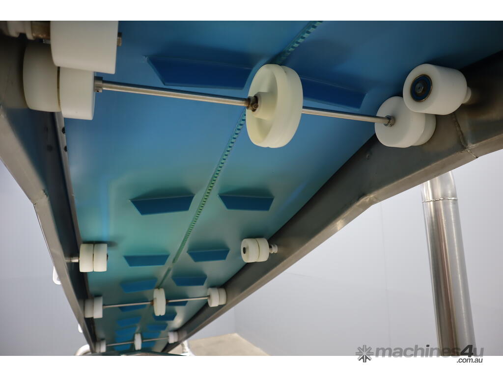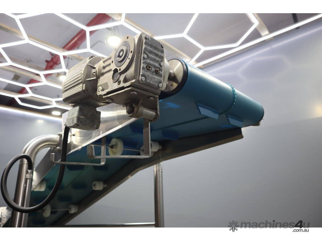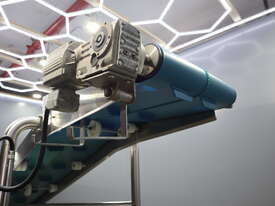 The conveyor is driven by an aseptic SEW motor which is a specialised smooth-casing electric motor designed for hygienic environments to prevent contamination and withstand frequent high-pressure washdowns.