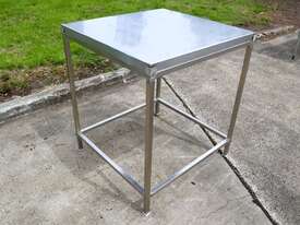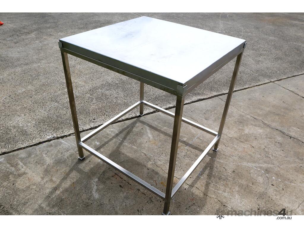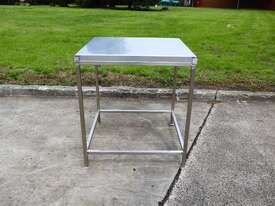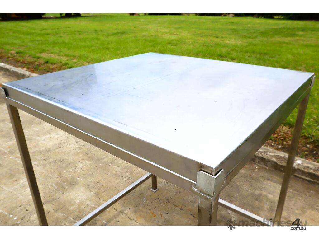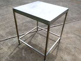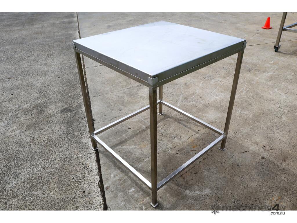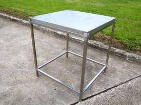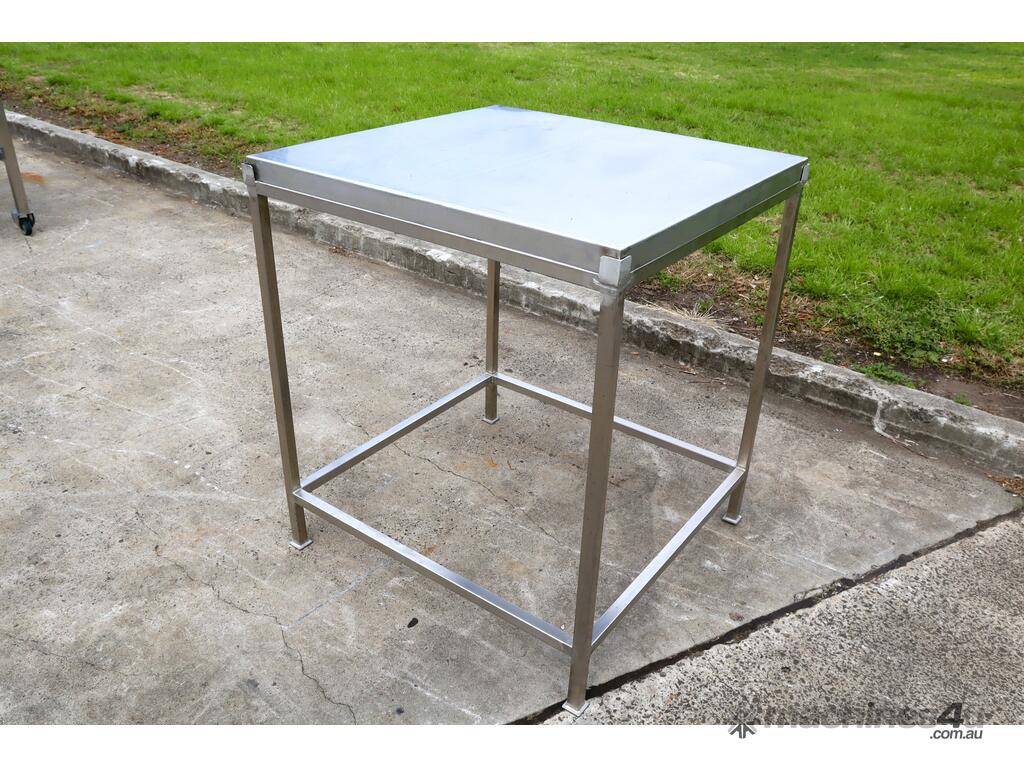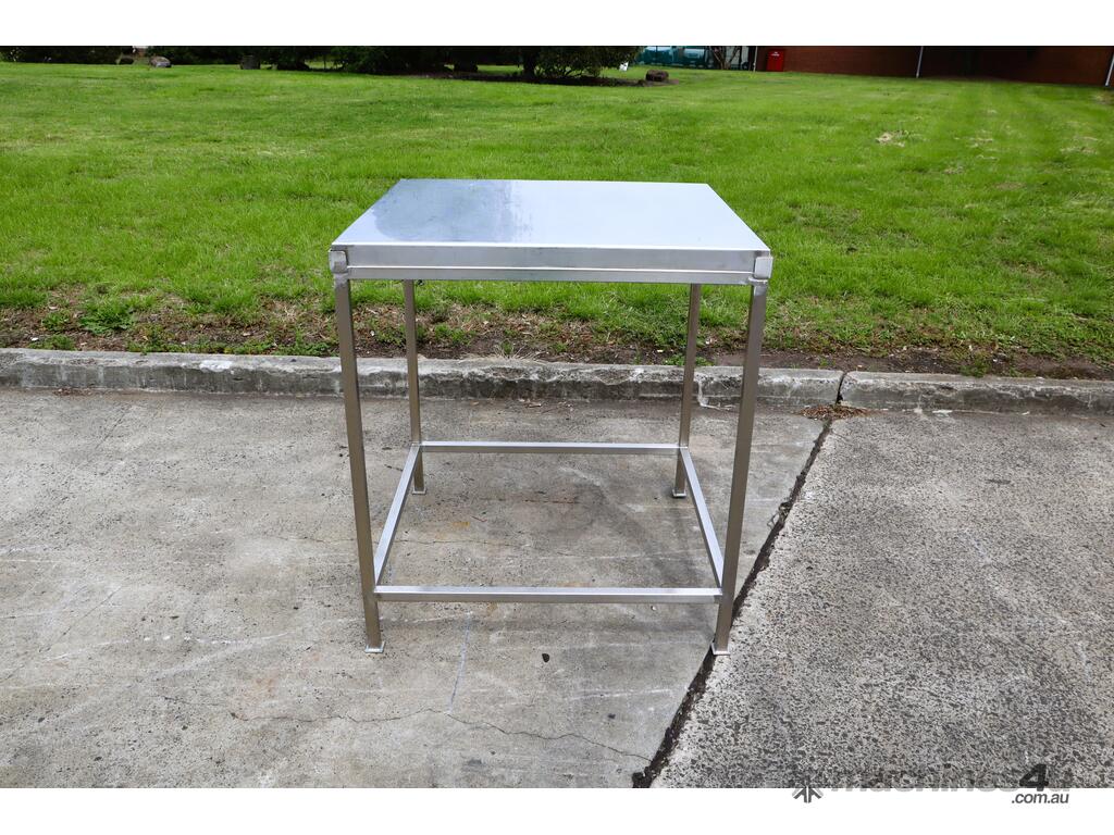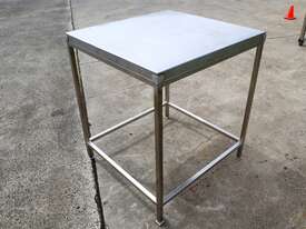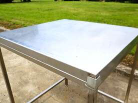 Stainless steel work table/trolley in great condition designed for hygienic production areas. Provides a solid, flat working surface with integrated mobility, allowing easy handling and movement of tools, product, or equipment.