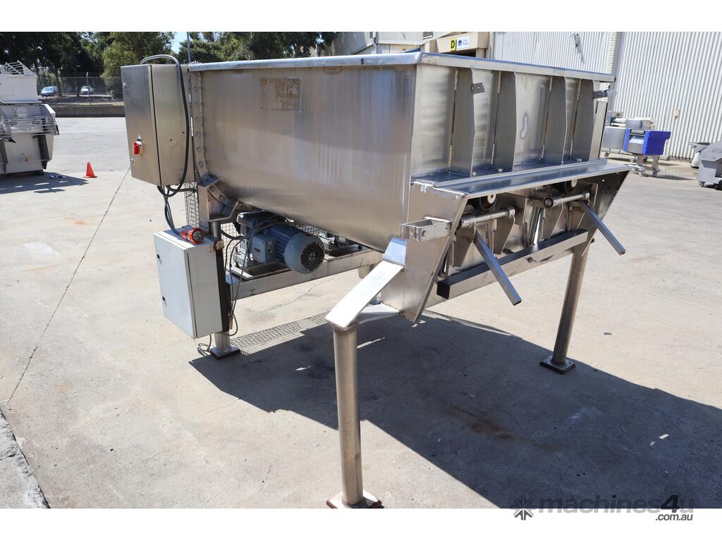 It is the ideal machine for small-medium meat industrial plants. It can mix every type of meat product or any other mixable product. Constructed of stainless steel, a mixing system comprising of ribbons and paddles, the frontal automatic discharge of the product allows output into trolleys, an emulsifier, a transfer pump, or into a screw conveyor.