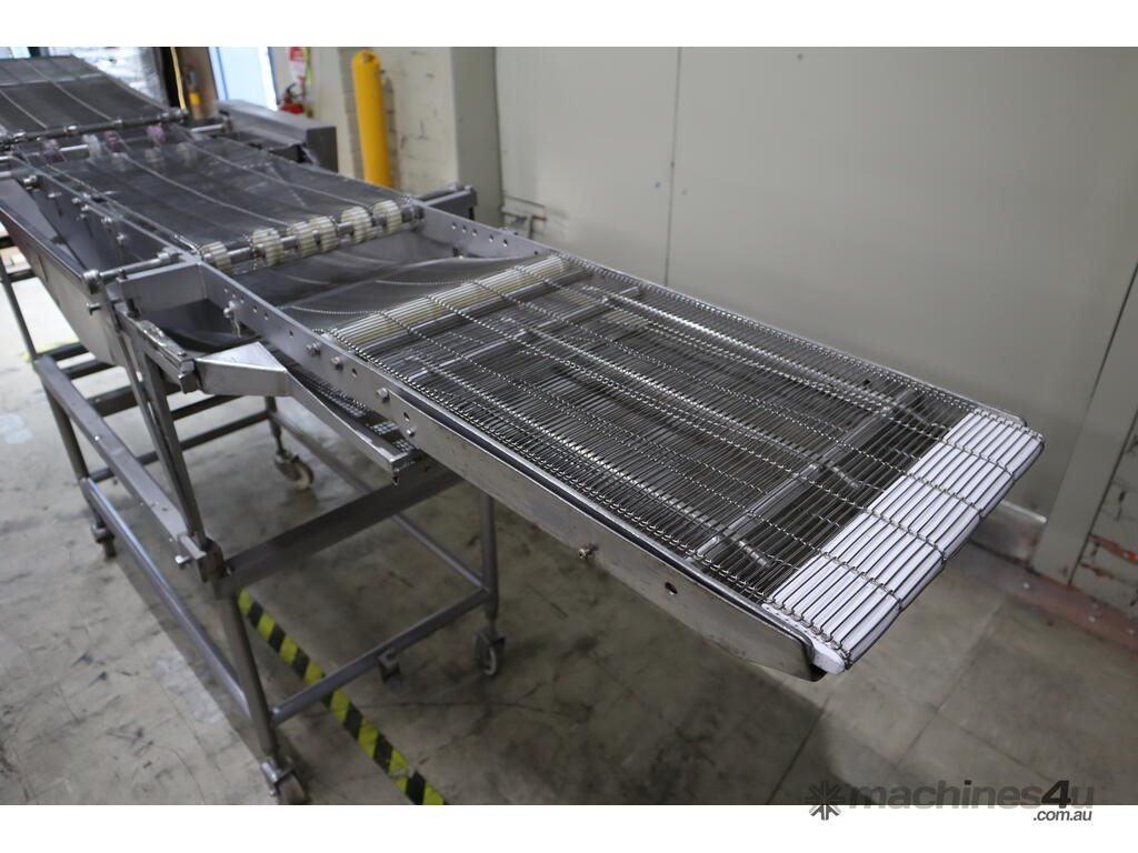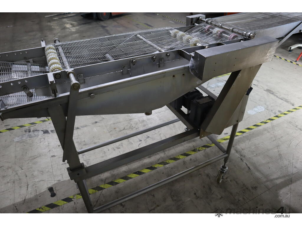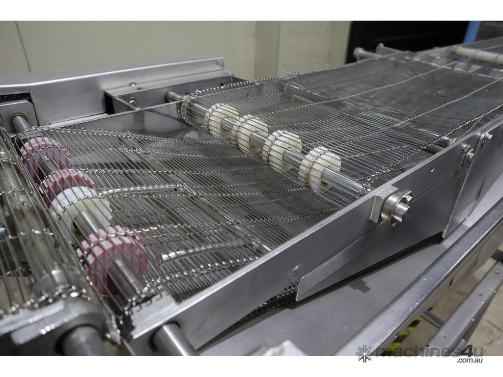 The batter is held in the tank, with two conveyor belts top and bottom with the contents traveling in between them.