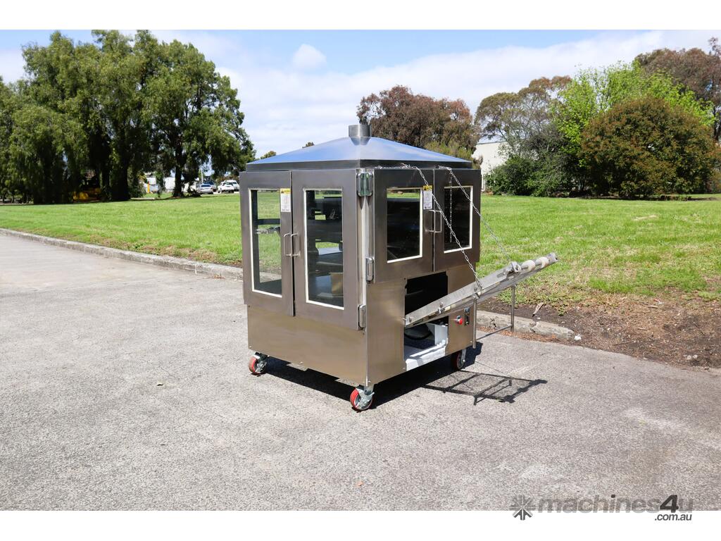 Industrial tortilla oven in excellent condition designed for continuous baking of tortillas as part of a commercial production line. Full stainless steel construction with viewing panels allows for consistent baking and monitoring during operation.