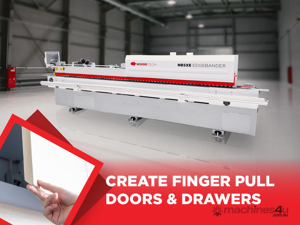 Introducing the latest edgebander from Wood Tech to create doors and drawers in-house with bevel / finger pull / shark nose profiles. The new NB5XE is 25% smaller than the original NB5XE.