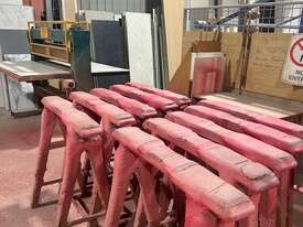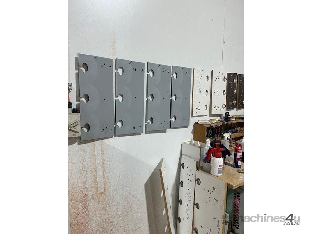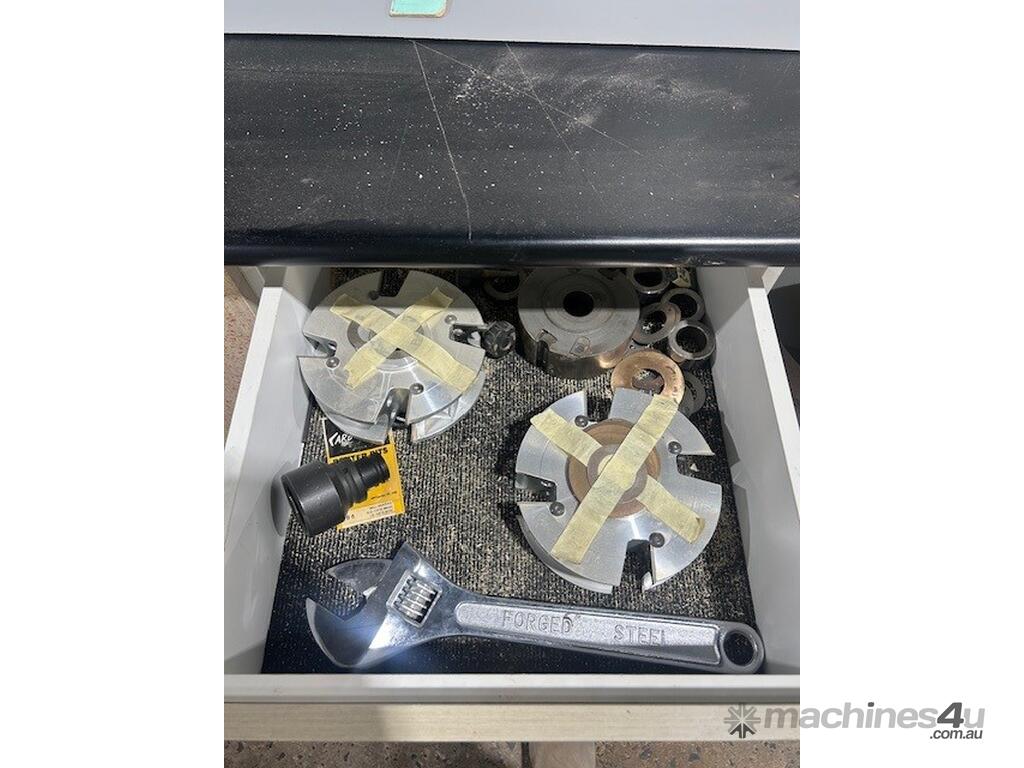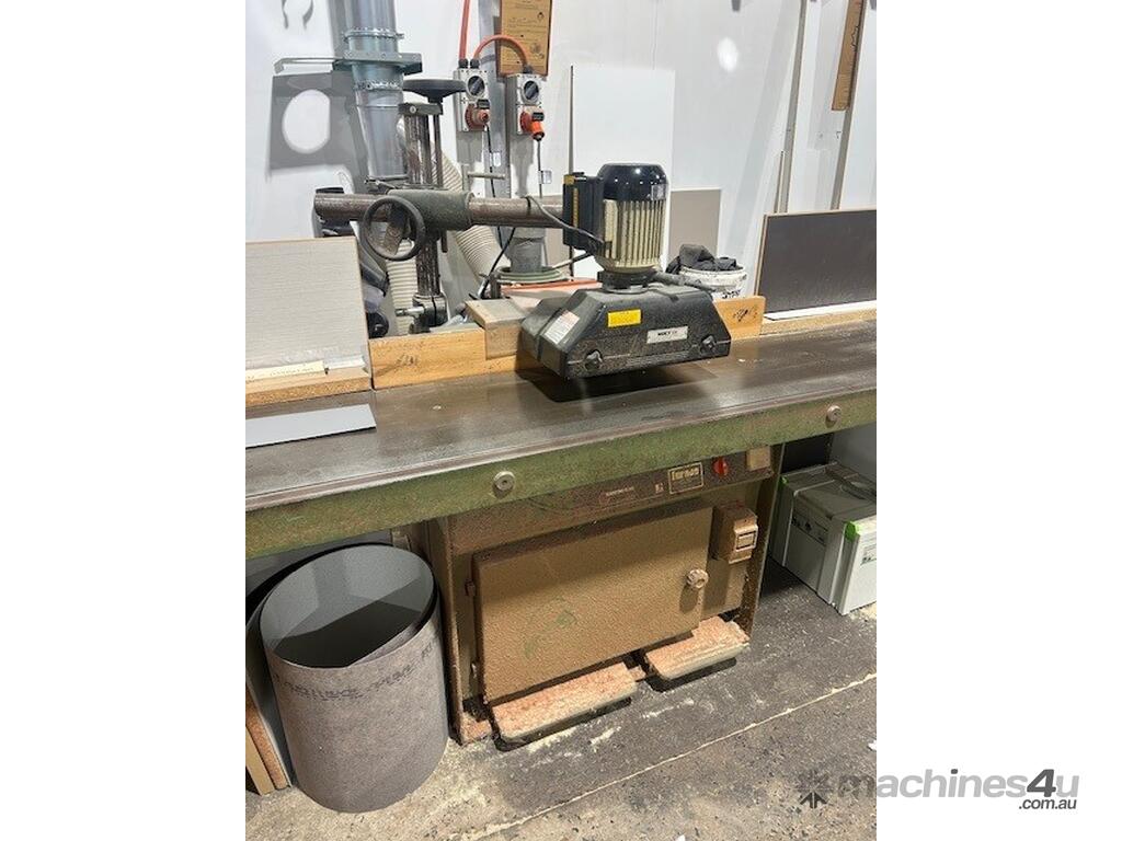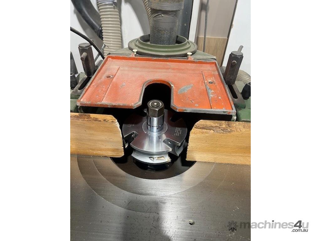 Spinal moulder with lead and tail out table with 3 lueco 4 blade heads 38mm 8x8 33mm 8x8 33mm 180/Bullnose