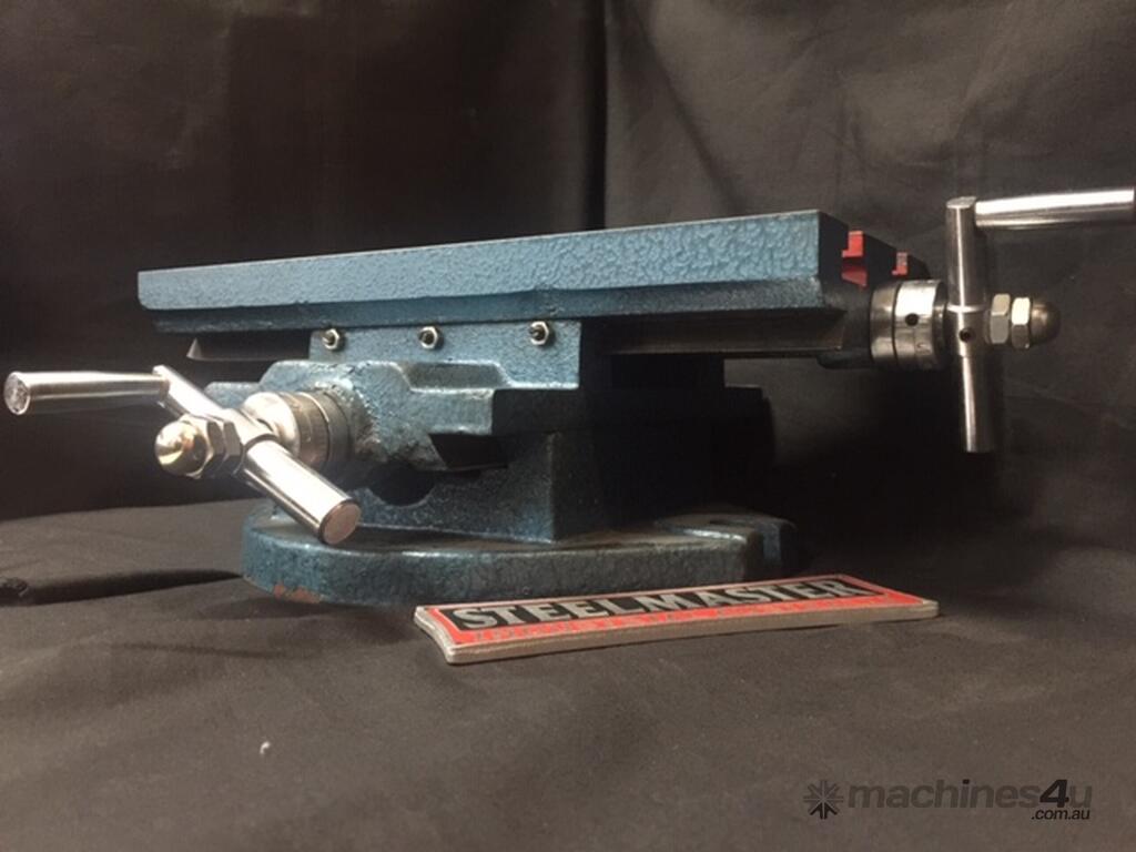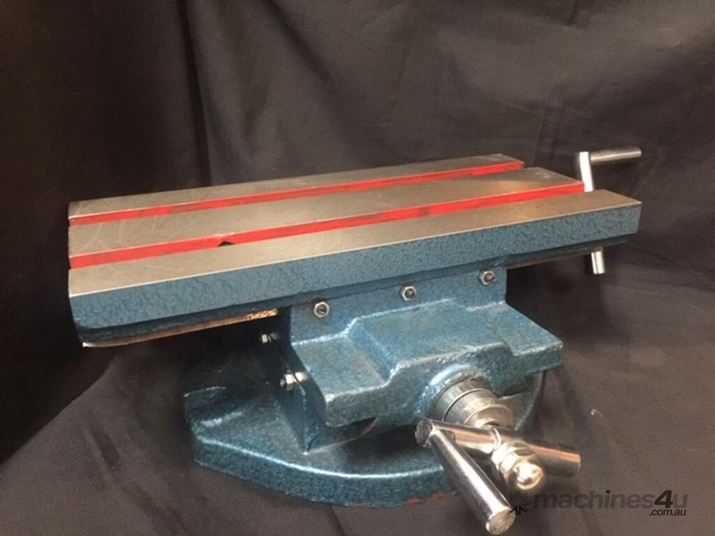 Heavy-duty compound slide table features 245mm of longitudinal and 145mm of transverse travel for versatile milling and drilling. Features 320mm x 145mm table, 16mm slots, and adjustable gibs.